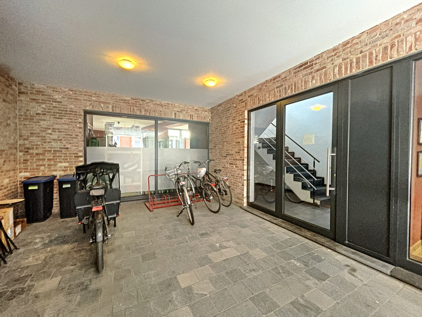 Onderaan het gebouwd bevindt er zich een fietsenstalling.
