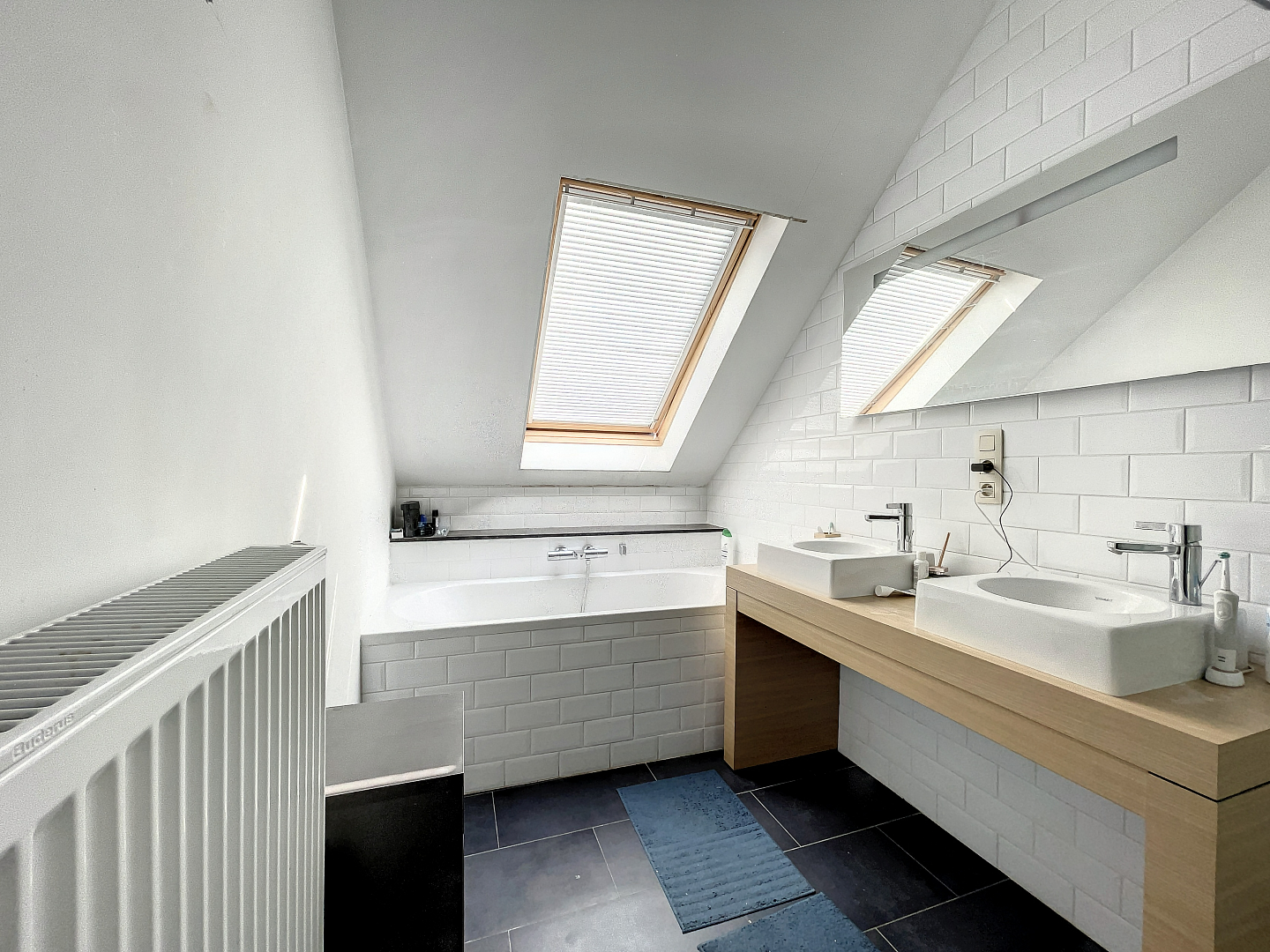 On the third floor there are three bedrooms, a separate toilet and a bathroom with double sink, shower and bath.