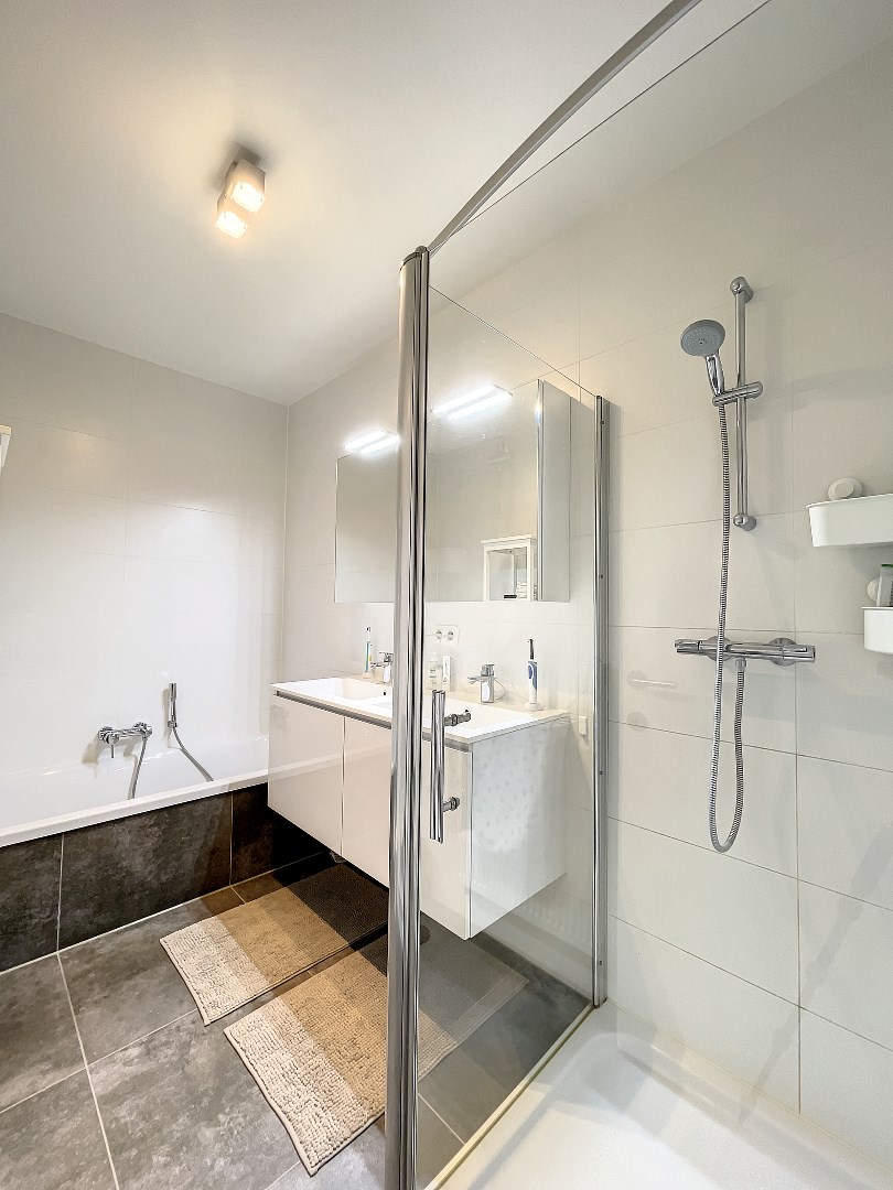 Het appartement is gelegen op de tweede verdieping van een welonderhouden residentie. We komen binnen in de ruime inkomhal met apart toilet. Vanuit de inkomhal kom je terecht in de woonkamer, aansluitende eetplaats en open keuken met berging. De leefruimte geeft toegang tot het terras met fijn uitzicht. Vervolgens beschikt het appartement over twee slaapkamers. De badkamer is voorzien van een douche én bad!