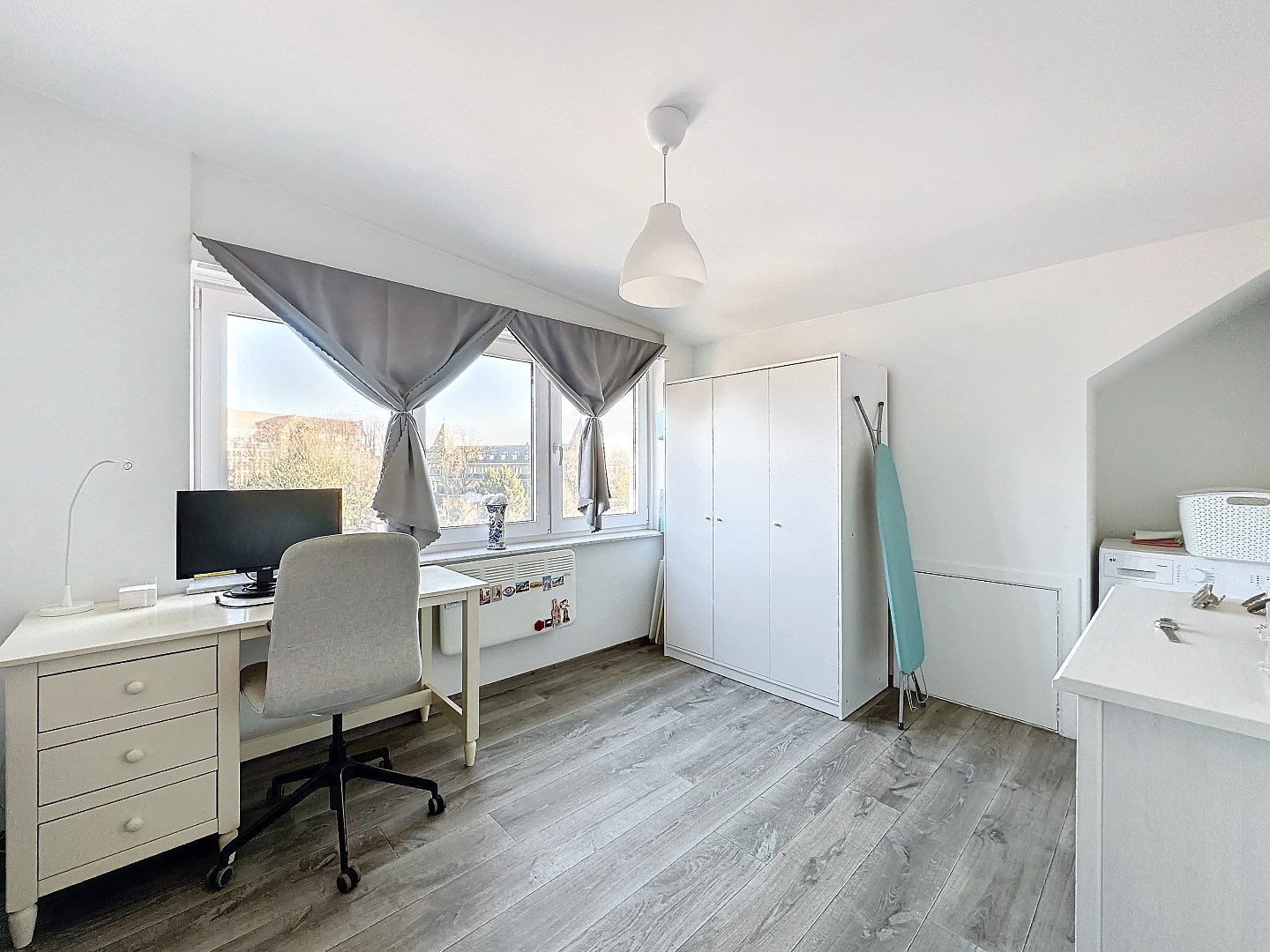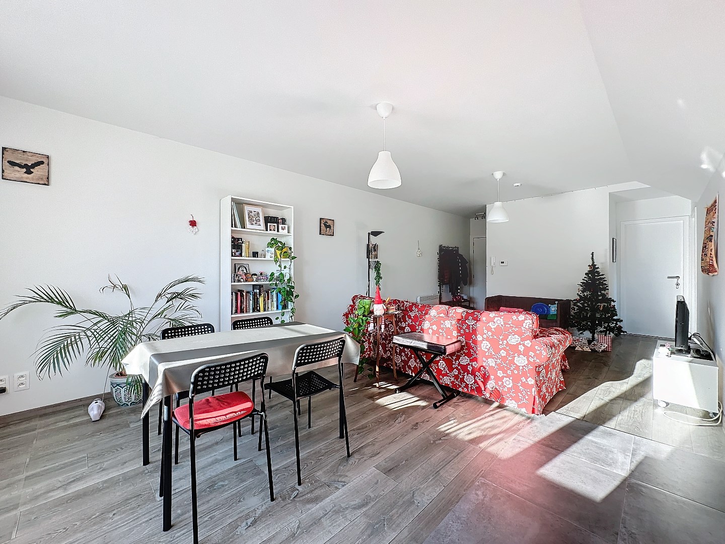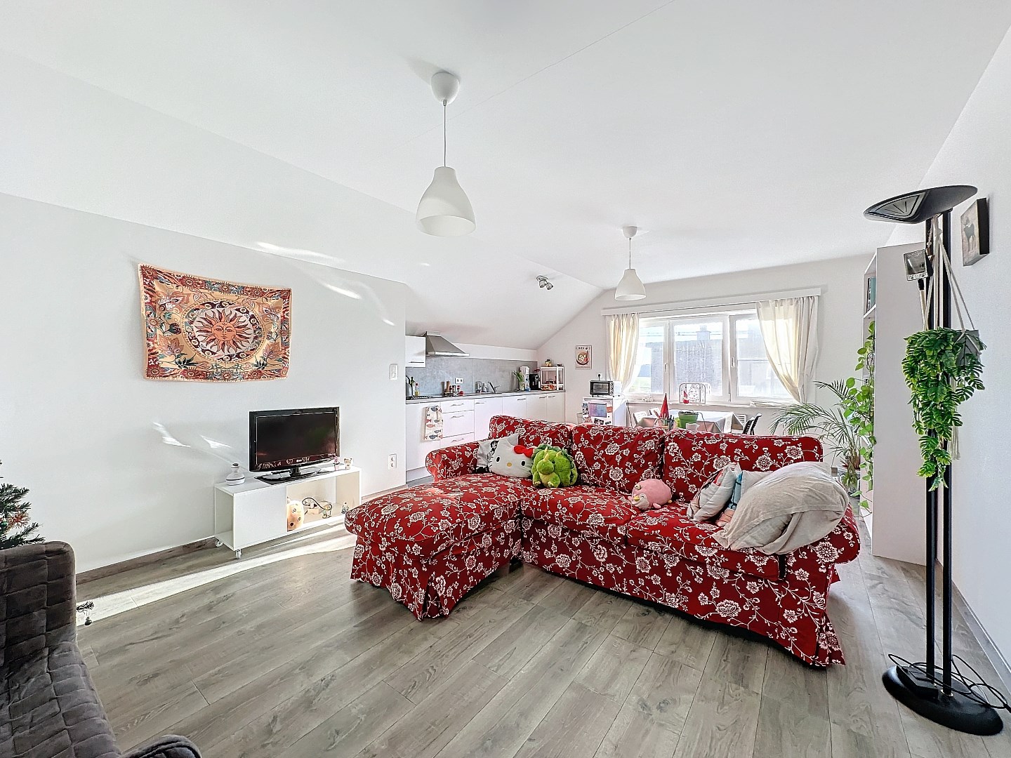 Het appartement beschikt over twee ruime slaapkamers, een moderne badkamer en een gezellige, lichtrijke leefruimte die perfect samenkomt met de open keuken. De grote ramen zorgen voor veel natuurlijk licht en een aangename sfeer.