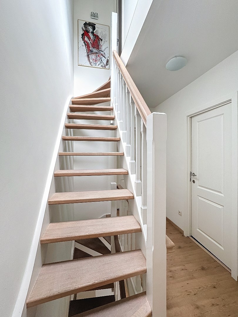 De woning omvat op de gelijkvloerse verdieping een woonkamer, eetkamer, keuken, aparte toilet en wasruimte. Vanuit de keuken heeft u rechtstreeks toegang tot het ruime, zonnige terras. Op de eerste verdieping zijn 3 slaapkamers en een badkamer met toilet aanwezig. Op de zolderverdieping met vaste trap bevindt zich nog een ruime slaapkamer.