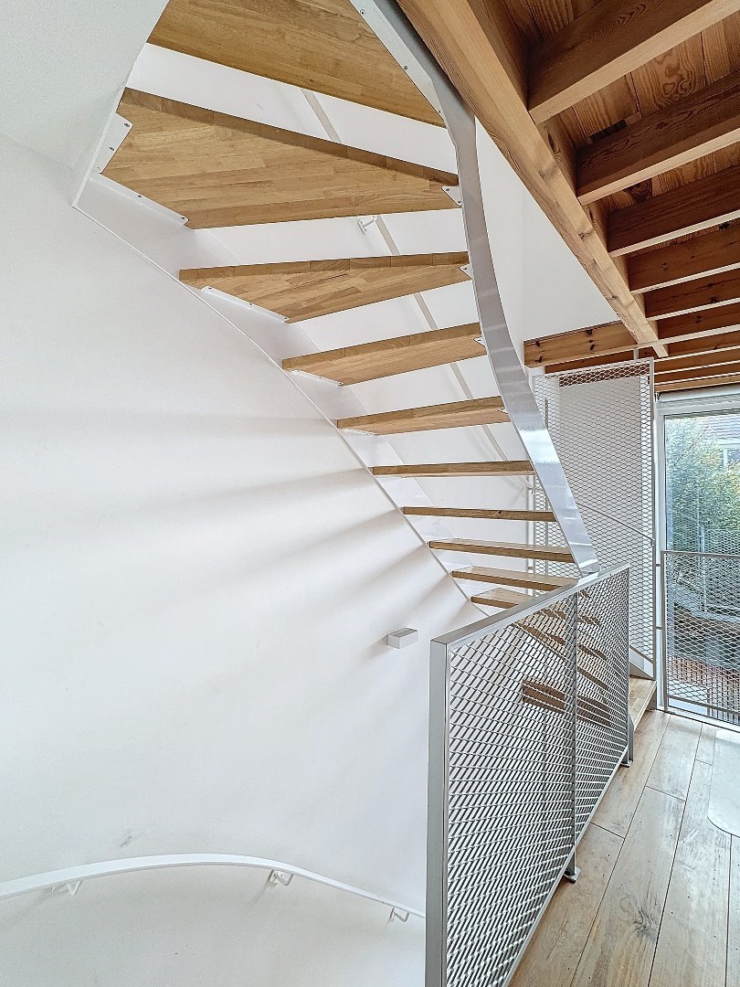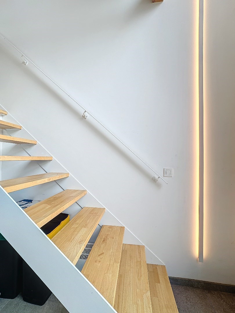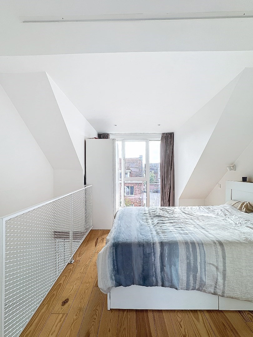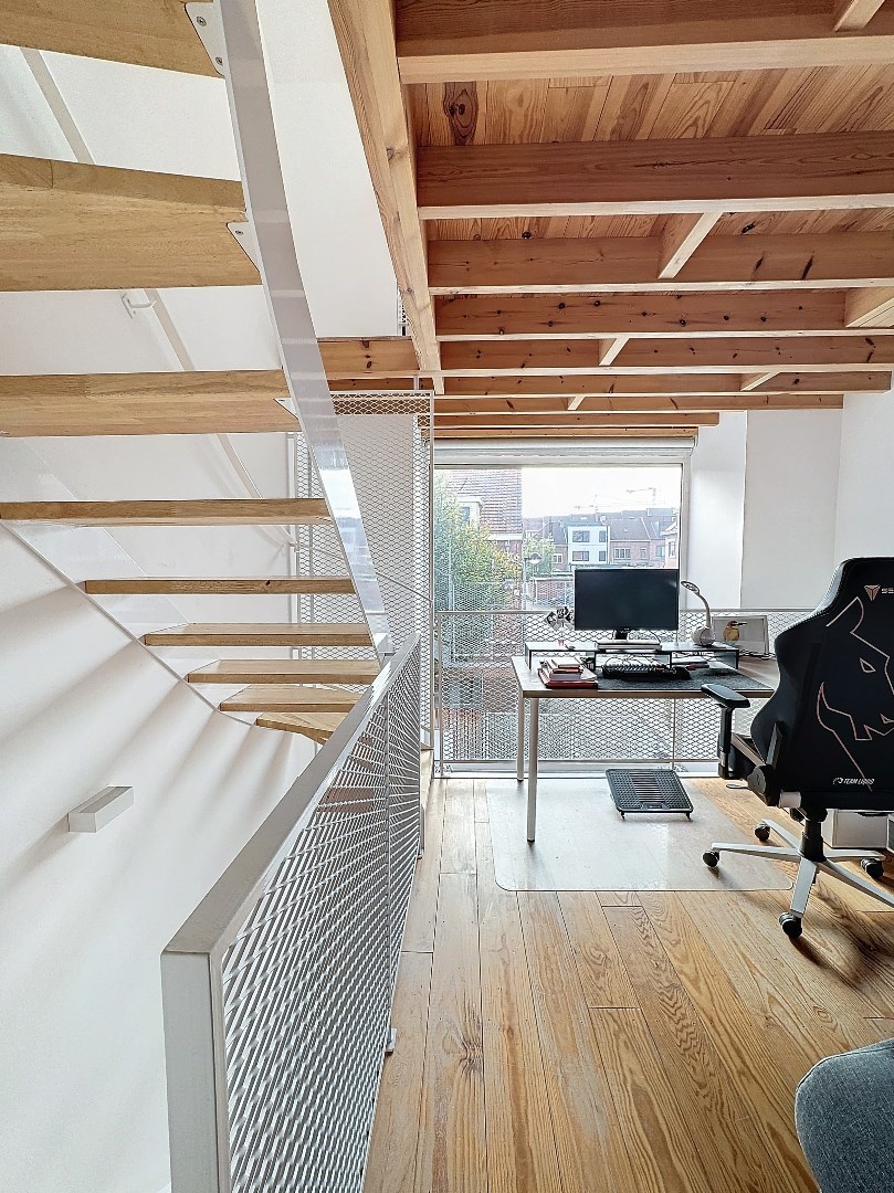 Op de eerste verdieping vind je een woonkamer en bureau, die naadloos in elkaar overvloeien. Op de tweede verdieping bevindt zich de slaapkamer met aansluitend de badkamer met inloopdouche, wasmachine en droogkast.