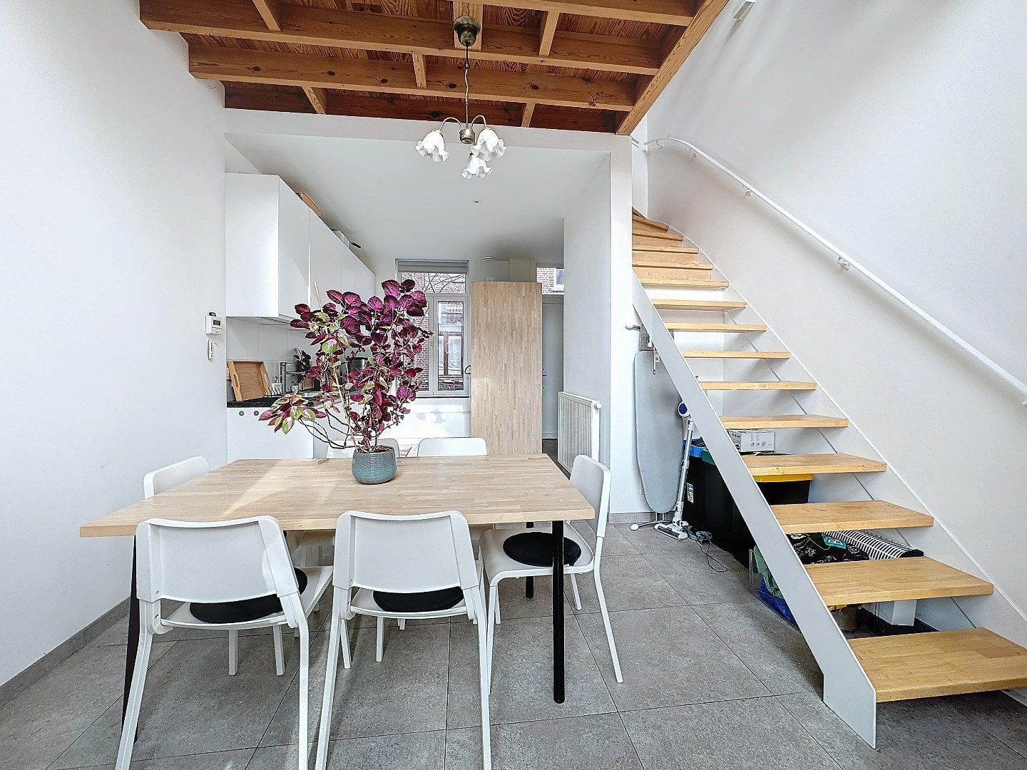 Je wordt begroet in een ruime en lichte keuken met eetkamer die perfect is voor gezellige avonden met vrienden en familie. De grote ramen zorgen voor een overvloed aan natuurlijk licht, wat de ruimte een warme en uitnodigende sfeer geeft. De aansluitende buitenruimte biedt een knus, sfeervol terras waar je kan genieten van de frisse lucht en een goed boek. Deze woning is een thuis, een plek om te ontspannen en tot rust te komen.