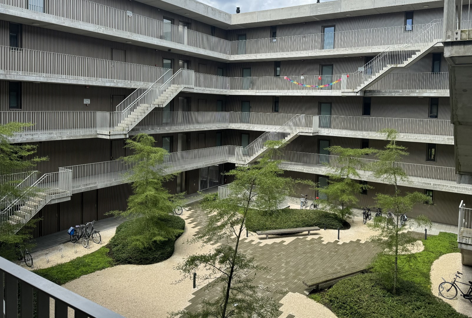 Het appartementscomplex is een waar pareltje qua design, beschikt over een prachtige binnentuin / atrium en herbergt 2 luxueuze fietsenstallingen. Tenslotte is er ook nog een parkeerplaats inbegrepen in de prijs, zodat je altijd zeker bent van een plekje voor je wagen.