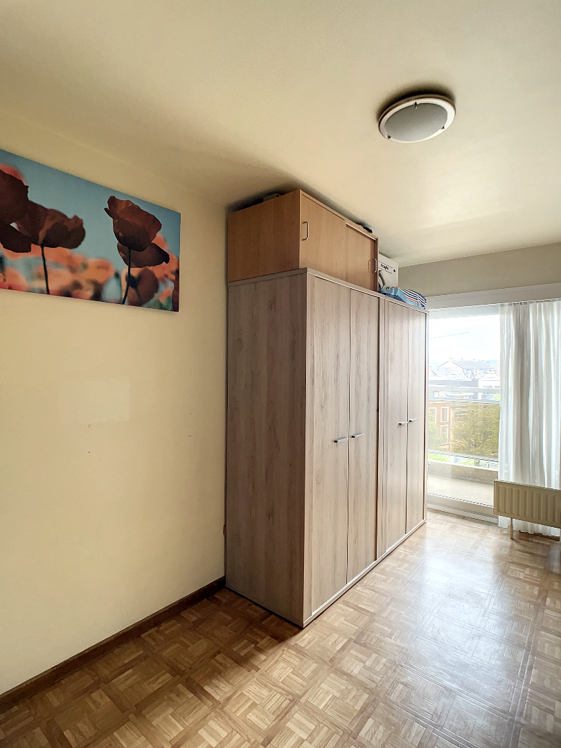Het appartement is gelegen op de 4de verdieping en omvat een ruime inkomhal, apart gastentoilet, geïnstalleerde keuken, lichtrijke eetplaats en leefruimte, 2 slaapkamers en badkamer met bad.