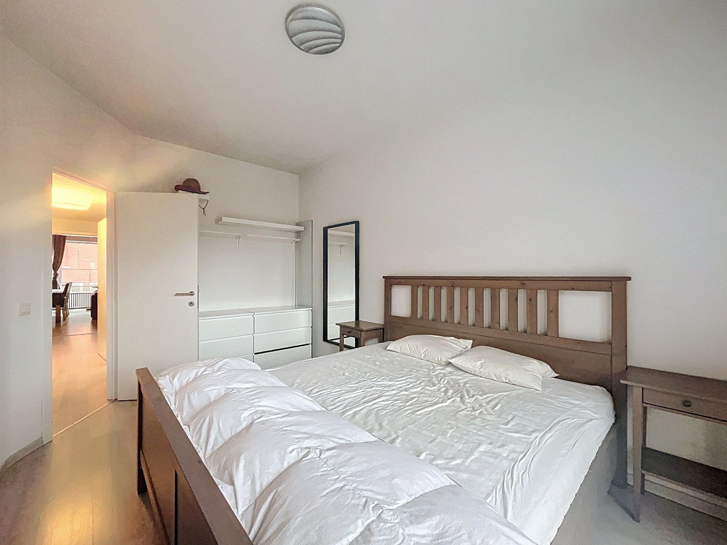 Het appartement beschikt over twee volwaardige slaapkamers en biedt daardoor voldoende ruimte voor een gezin, een koppel of wie graag extra plaats heeft voor een bureau of gasten. Het gebouw dateert uit 1966 en ademt nog steeds de degelijke charme van die periode.