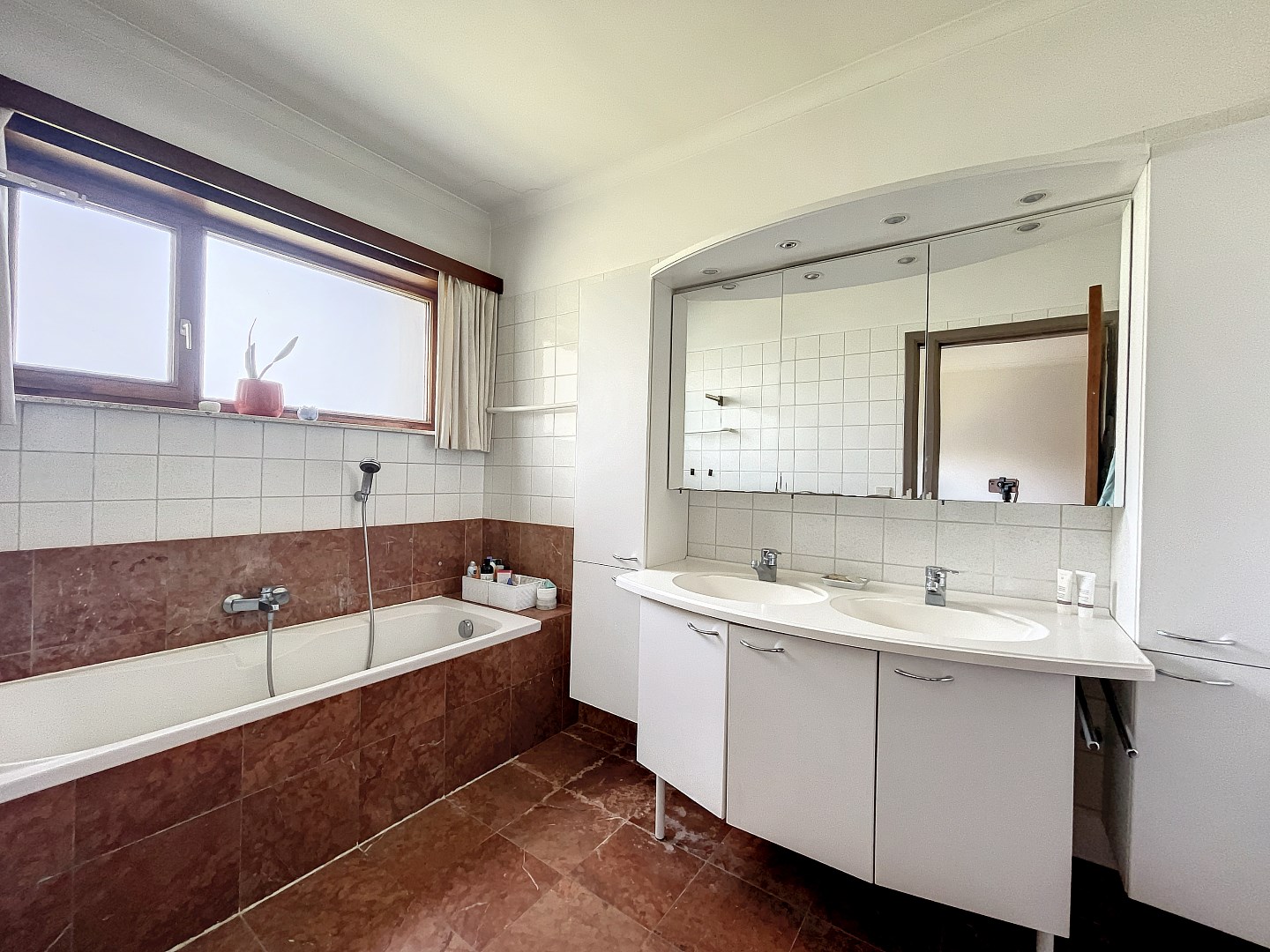 Daarnaast beschikt het huis op het gelijkvloers over vijf slaapkamers. Een van de slaapkamers heeft een aangrenzende badkamer. De overige slaapkamers delen een tweede badkamer. Er zijn ook twee bureauruimtes die gebruikt kunnen worden als werkruimte of studeerkamer. Tenslotte kan u op de eerste verdieping nog een slaapkamer, speelkamer en zolder terugvinden.