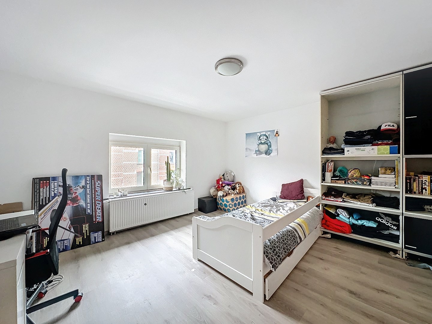 Boven de handelsruimte bevindt zich een ruim duplex appartement, verdeeld over twee verdiepingen. Het appartement beschikt over een open keuken met eetplaats en leefruimte, drie slaapkamers en een badkamer en heeft een EPC label D.