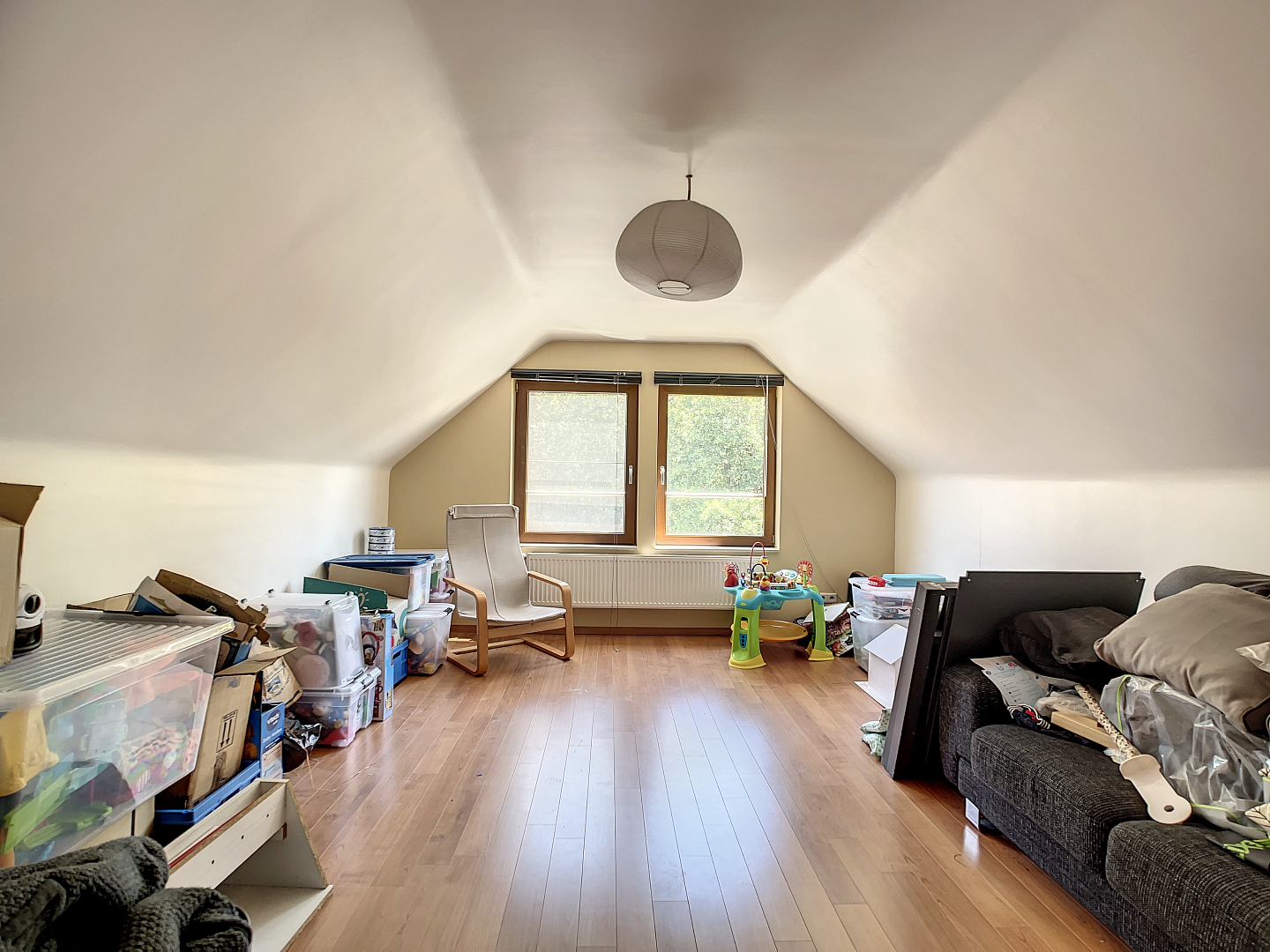 Op het 2de verdiep: 2 ruime kamers met in het midden een mezzanine.