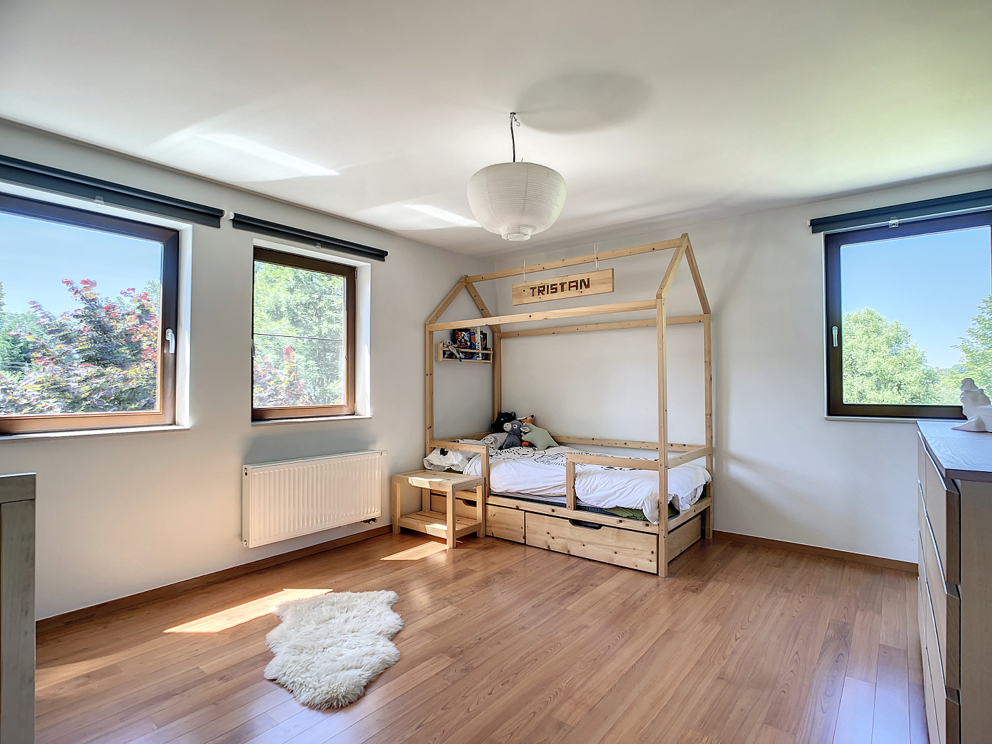 Op de 1e verdieping: een nachthal, 4 grote slaapkamers, een dressing en 2 badkamers.