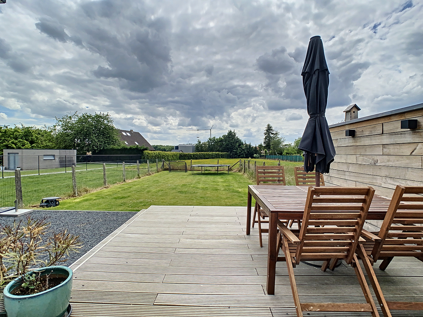 Zowel via het grote schuifraam in de keuken, als de achterdeur in de garage komt u in de zuidwest georiënteerde tuin met zicht op groen.