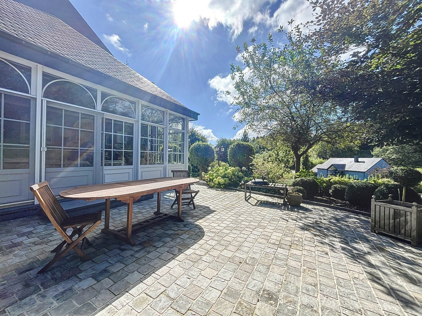 Met een perceeloppervlakte van 39 are is er voldoende ruimte om te genieten van de prachtige tuin en het zonnige terras op het zuidwesten. De woning beschikt over een inpandige garage met 4 garageplaatsen en nog extra parkeergelegenheid op het domein.
