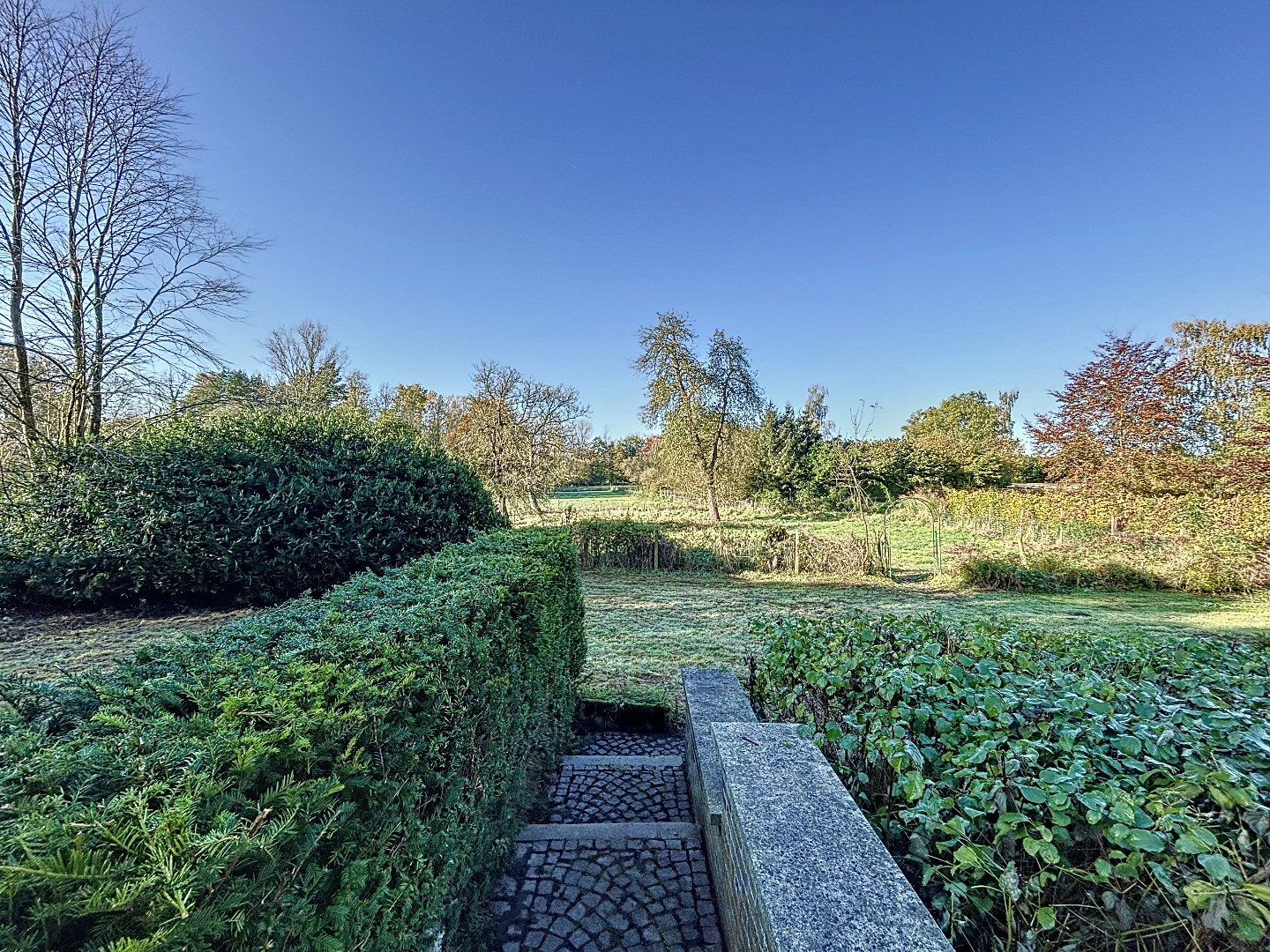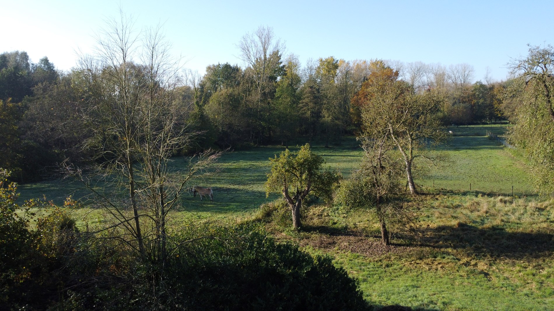 De oriëntatie van de tuin op het zuiden zorgt ervoor dat je de hele dag door kunt genieten van de zon. Naast de woning bevindt zich een weide waar men dieren op kan houden.