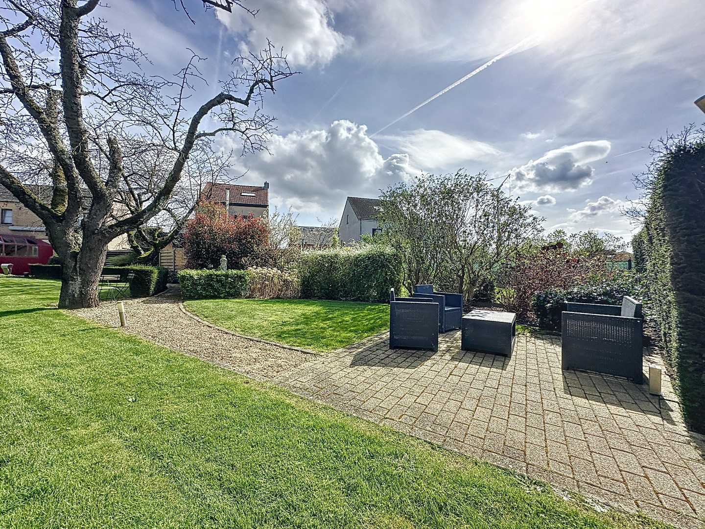 Met vier parkeerplaatsen is er voldoende ruimte voor het parkeren van auto's. De oriëntatie van de tuin op het zuidwesten zorgt ervoor dat je de hele dag door van de zon kunt genieten, ideaal voor zomerse barbecues en ontspannen avonden in de buitenlucht.