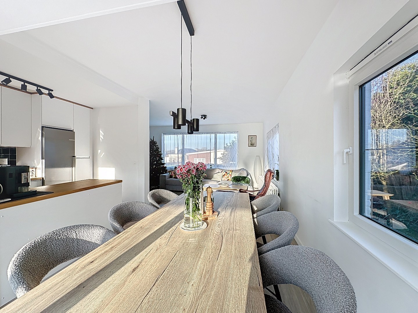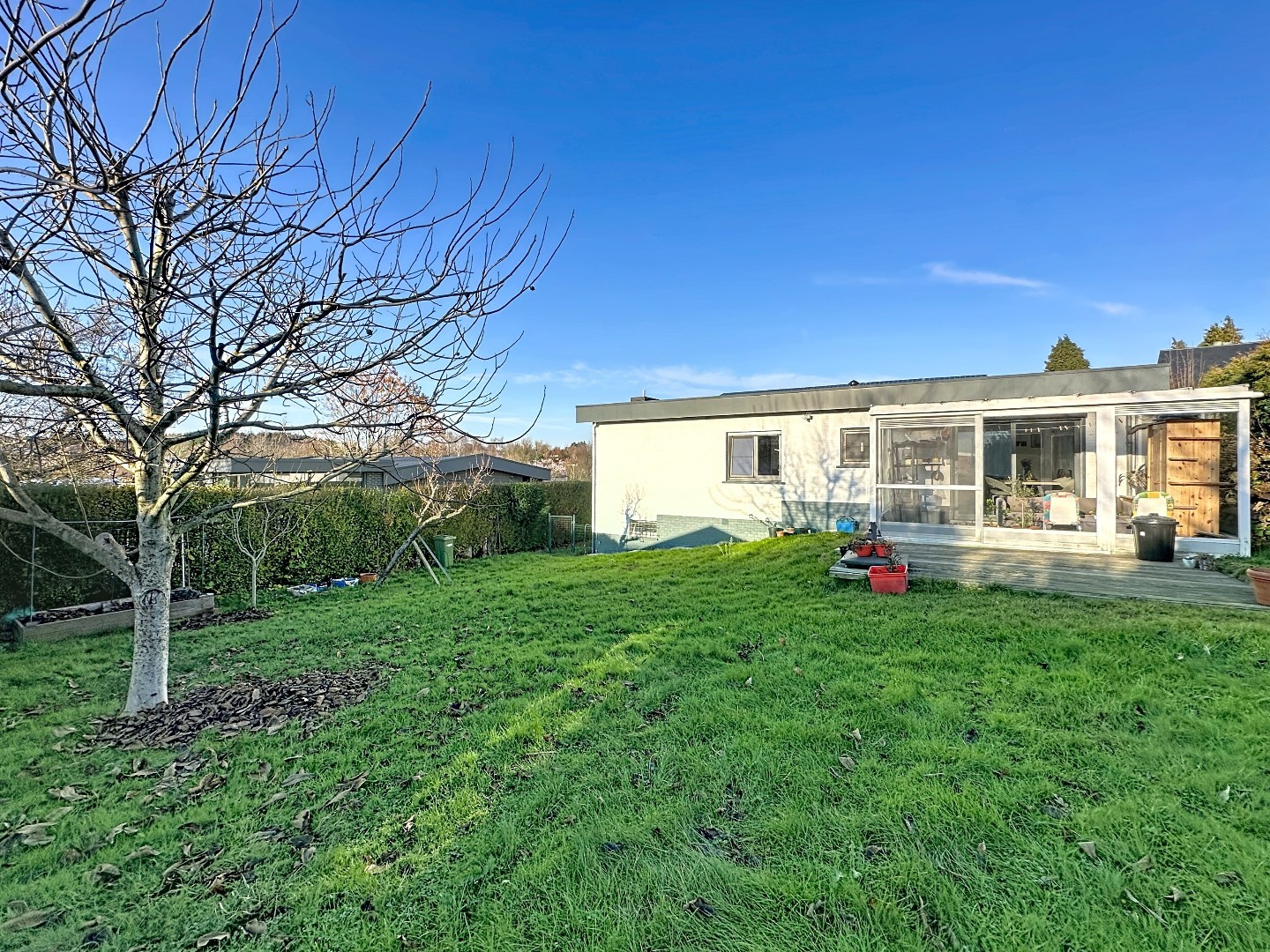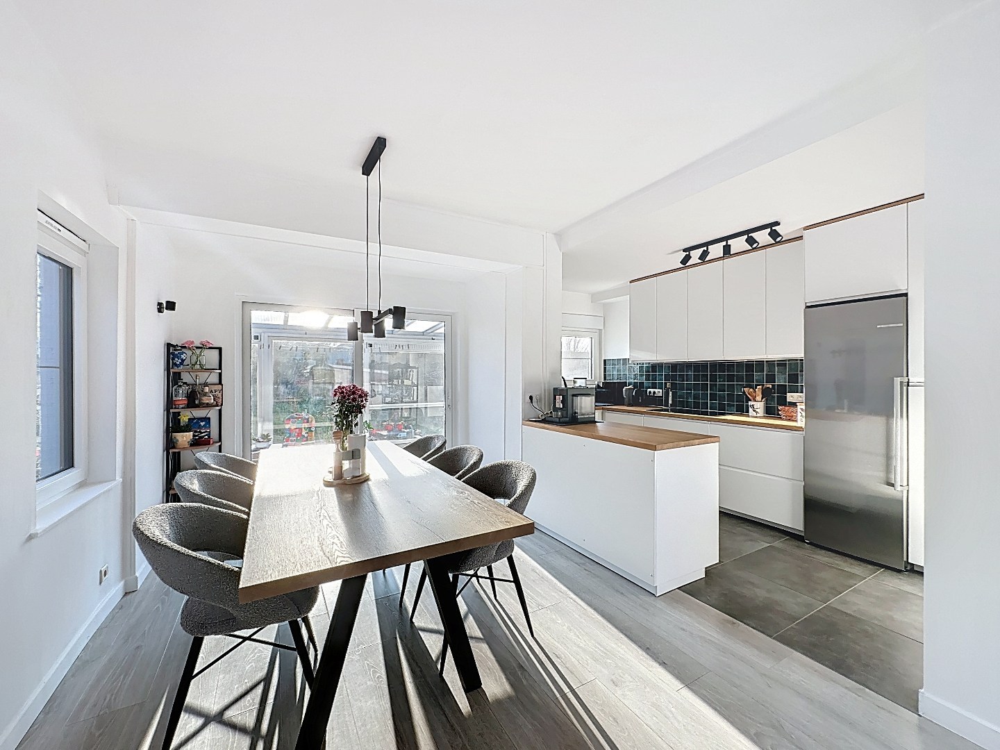 De lichtrijke leefruimte creëert een aangename sfeer en staat in harmonie met de mooie zuidwest georiënteerde tuin. Hier geniet u volop van zonlicht van de namiddag tot de avond – perfect voor gezellige zomeravonden, een ontspannen moment in het groen of een etentje met familie en vrienden.