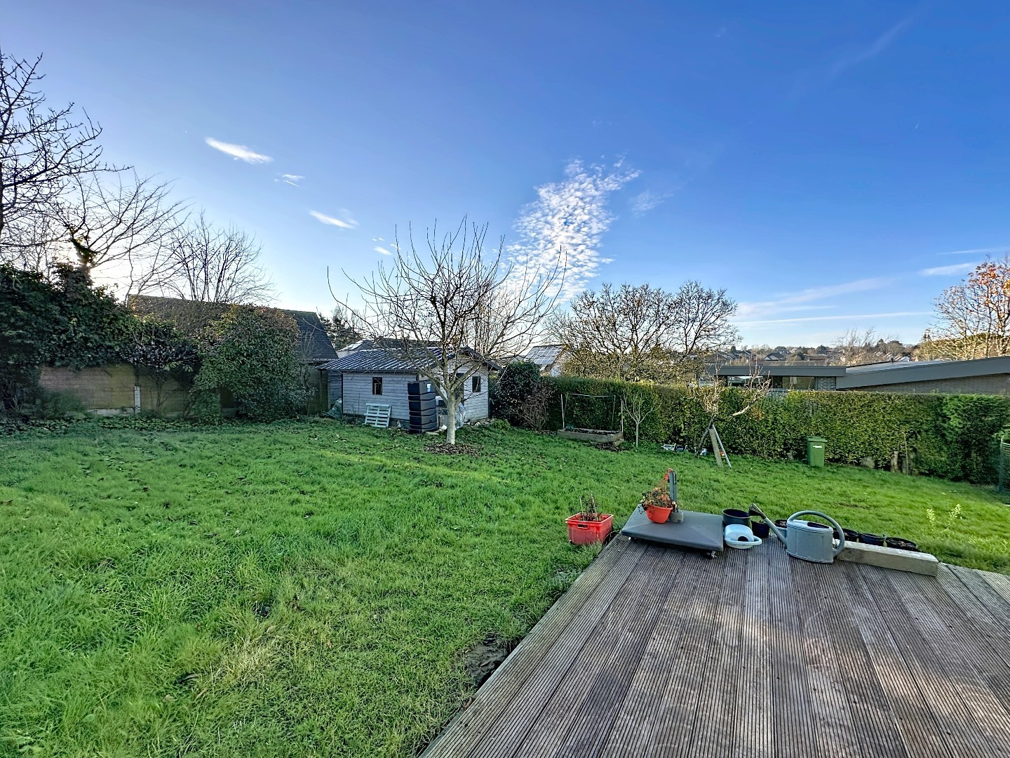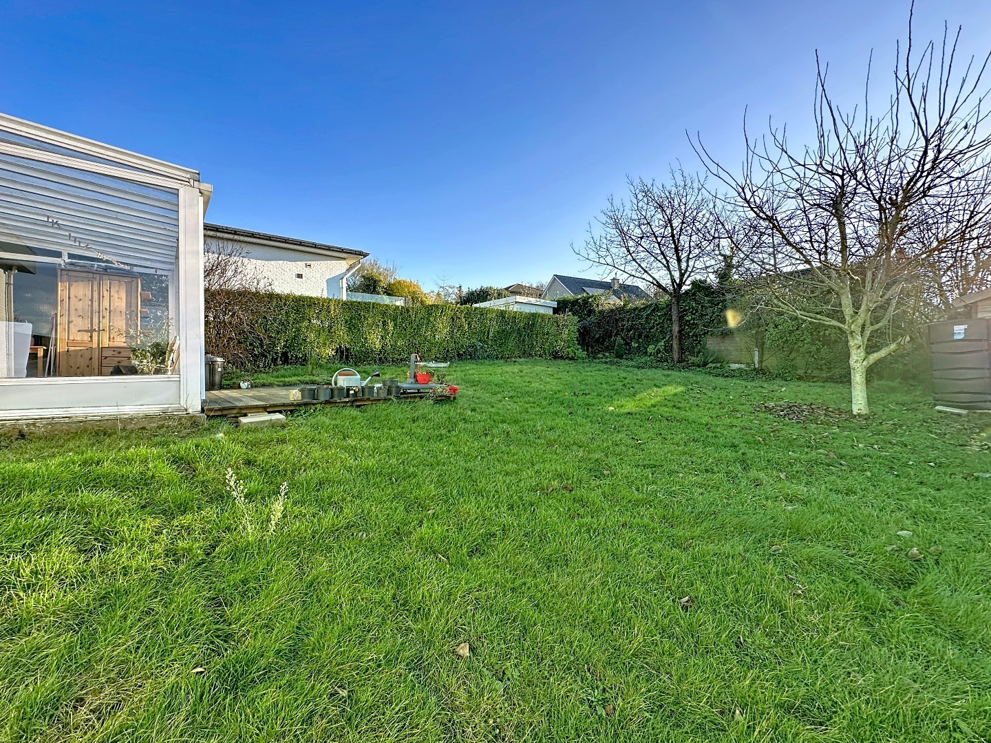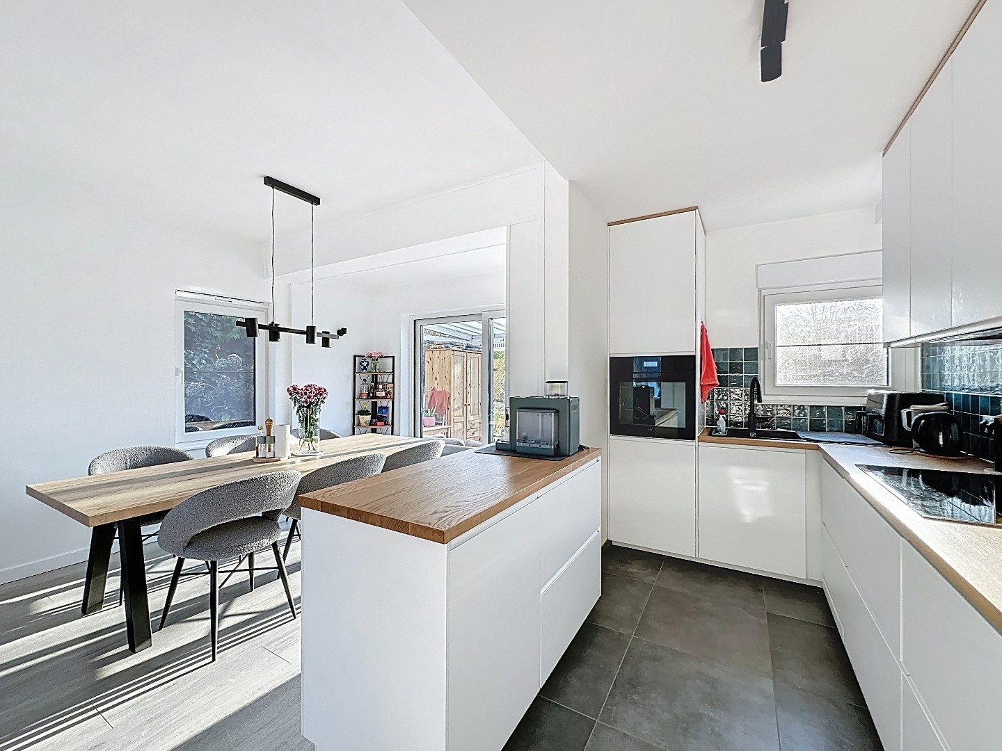 De lichtrijke leefruimte creëert een aangename sfeer en staat in harmonie met de mooie zuidwest georiënteerde tuin. Hier geniet u volop van zonlicht van de namiddag tot de avond – perfect voor gezellige zomeravonden, een ontspannen moment in het groen of een etentje met familie en vrienden.