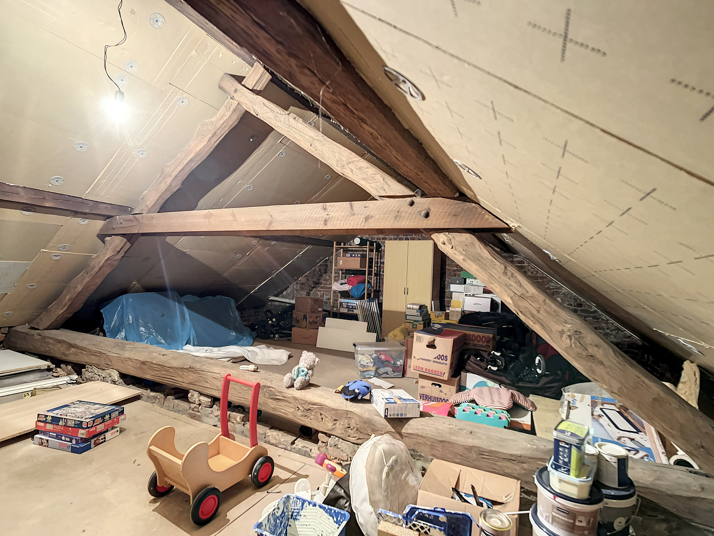 De zolder kan verder afgewerkt worden tot een volwaardige extra leefruimte. De aanwezigheid van een charmante en rustig gelegen tuin met terras, maakt van dit huis een buitenkans !