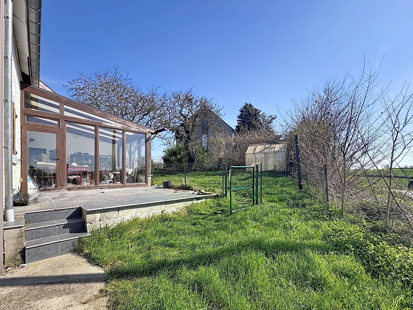 De woning beschikt over een aangename tuin met zuidwestelijke oriëntatie, waardoor u volop van de zon kunt genieten. Het terras vormt de ideale plek voor gezellige momenten met familie en vrienden, terwijl de tuin voldoende ruimte biedt om te ontspannen of te genieten van het buitenleven.