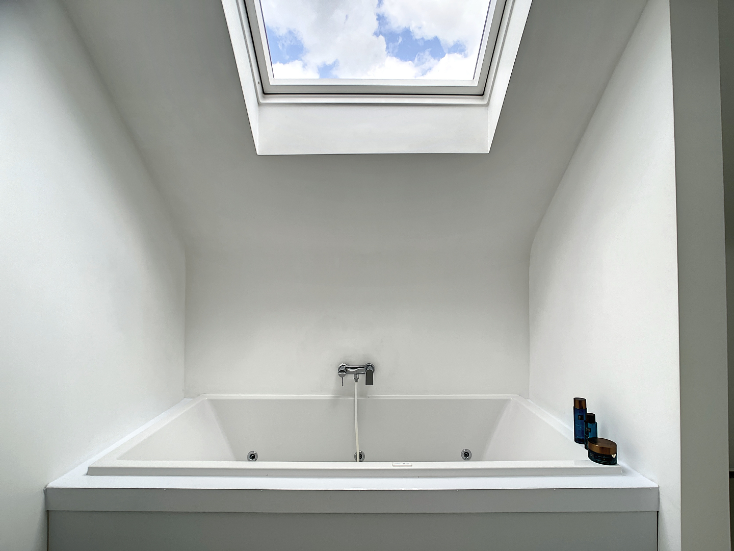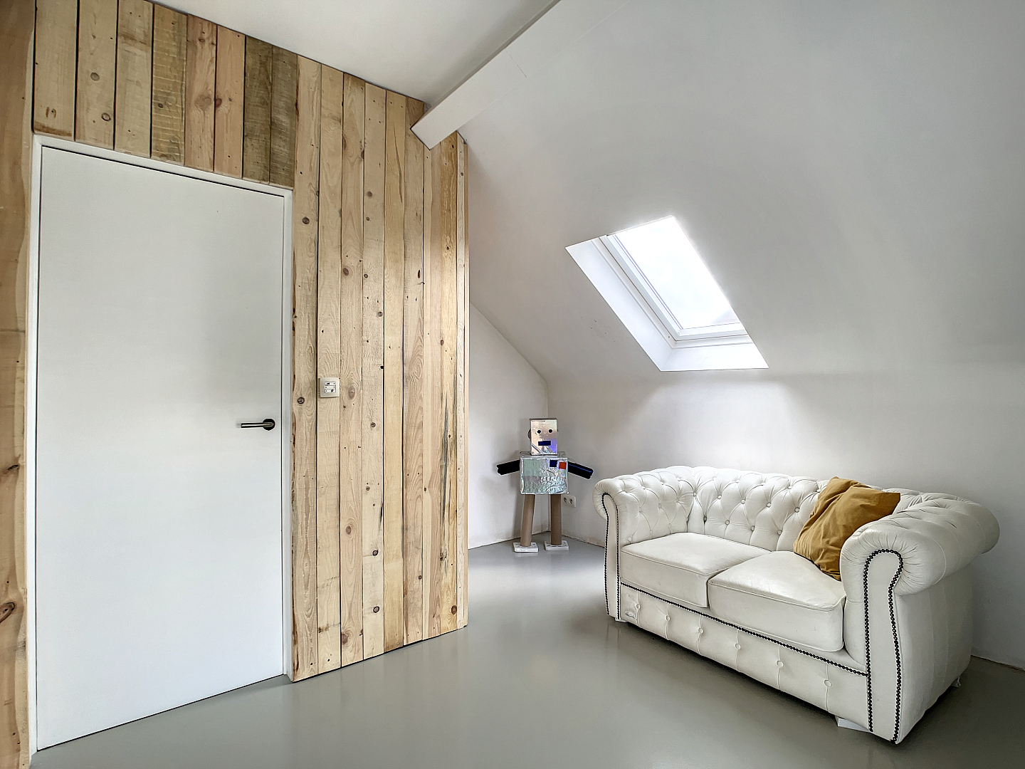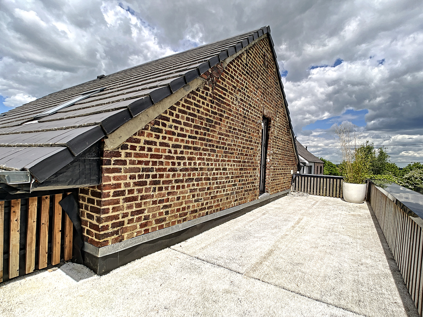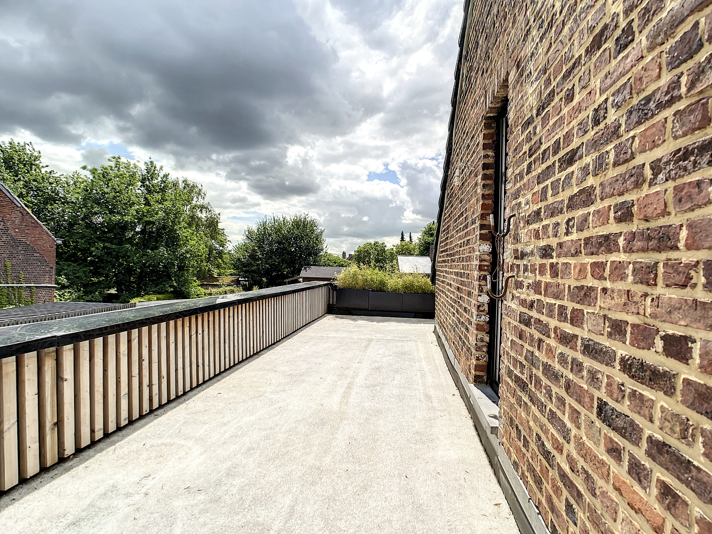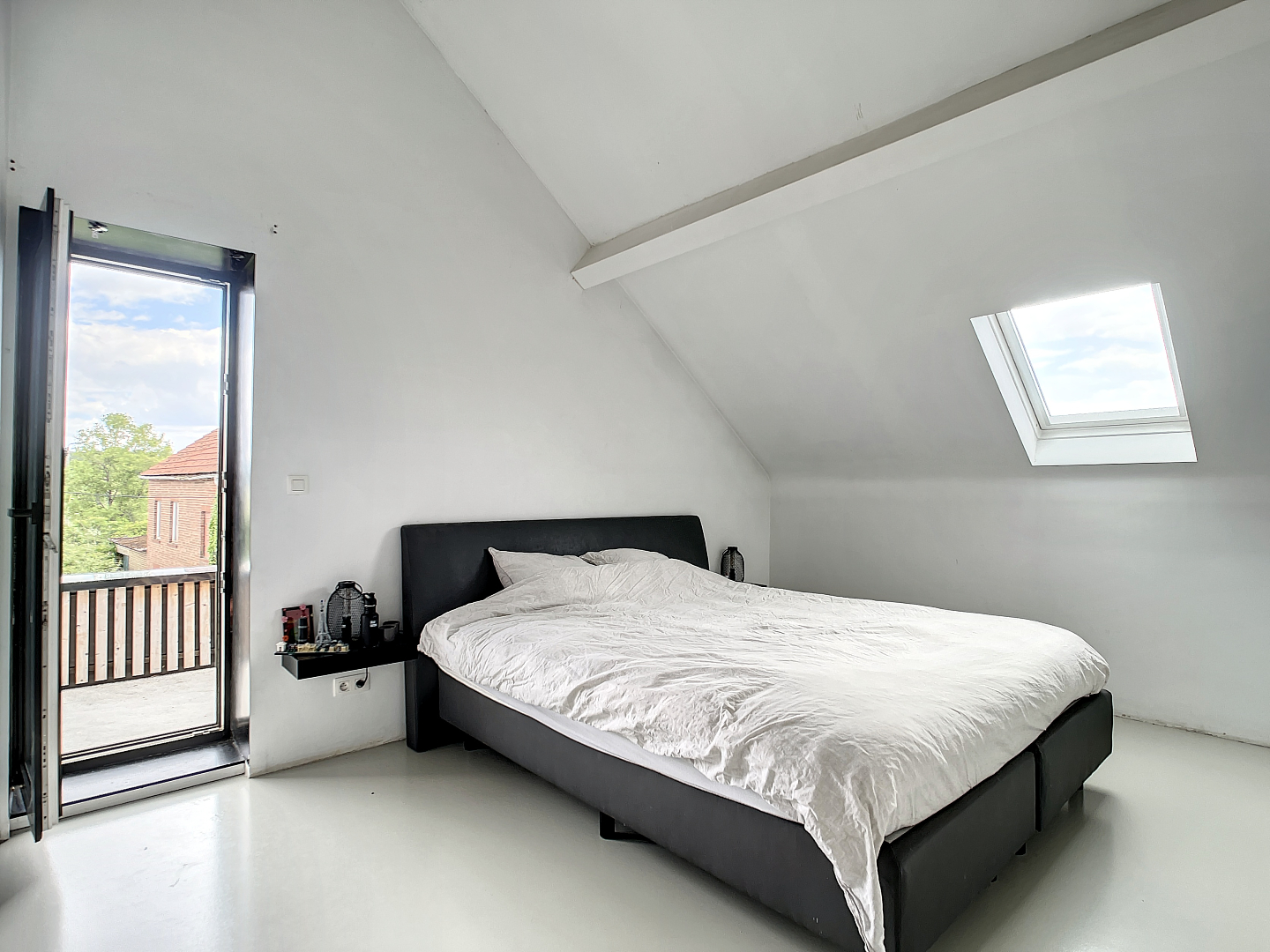 Op het verdiep kom je via de prachtige nachthal, met zicht op de inkomhal, in de master bedroom, met dressing en dakterras. Verder zijn er nog 2 ruime kamers met inbouwkasten en is er een badkamer met toilet, dubbele lavabo, groot bad en een prachtige inloopdouche. Tevens is er toegang tot de zolder via een zolderluik die dient als opbergruimte.