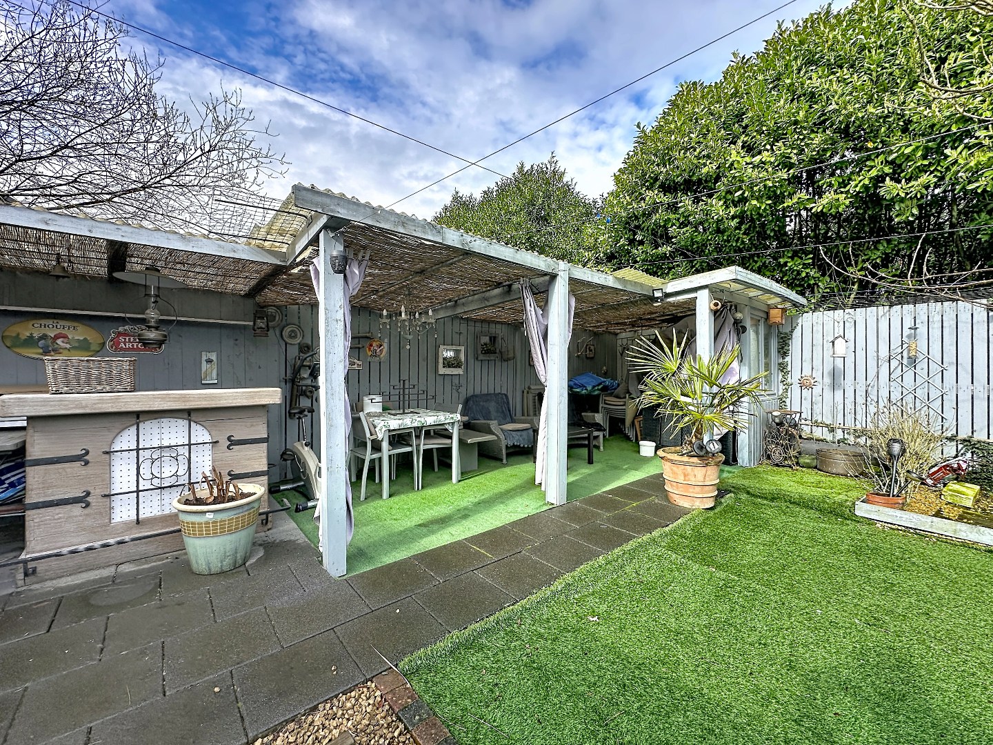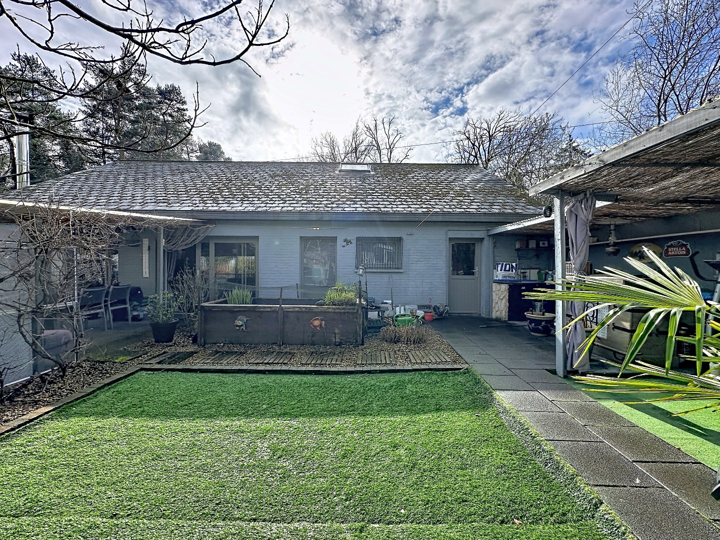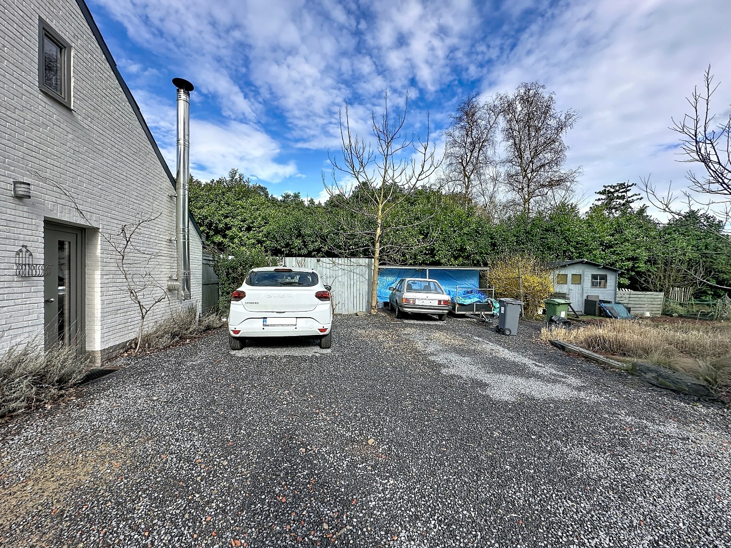 Buiten vindt u een tuin met noordoostelijke oriëntatie en een terras waar u kan genieten van het buitenleven. Bovendien is er voldoende parkeergelegenheid voorzien voor meerdere wagens (tot 4), wat een belangrijke troef is.