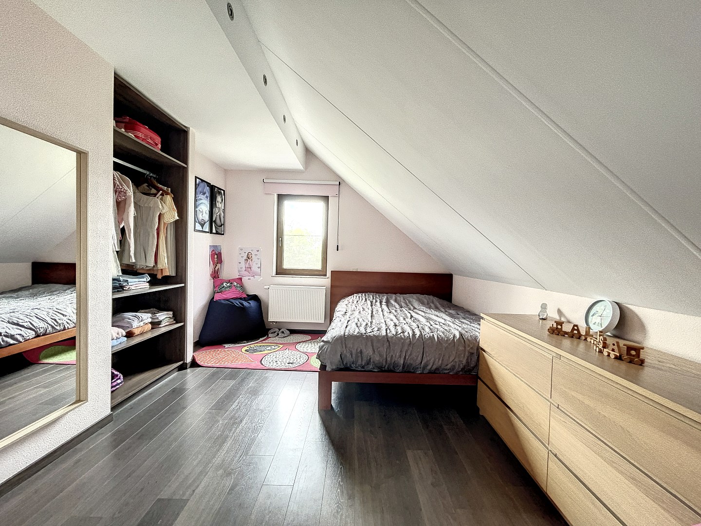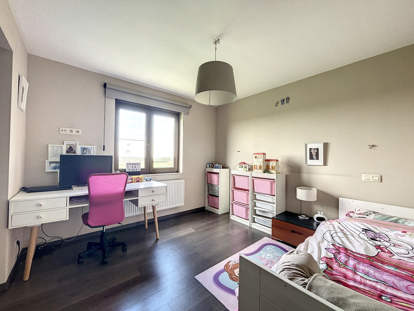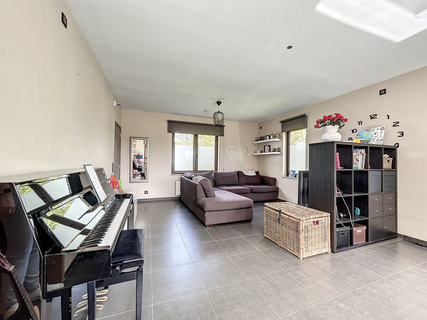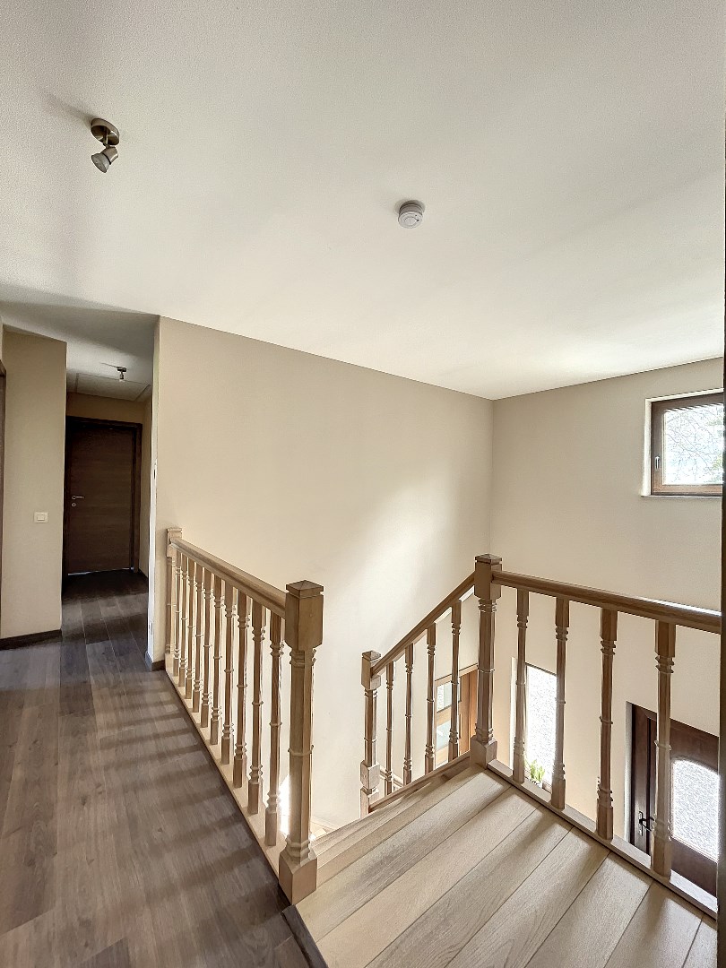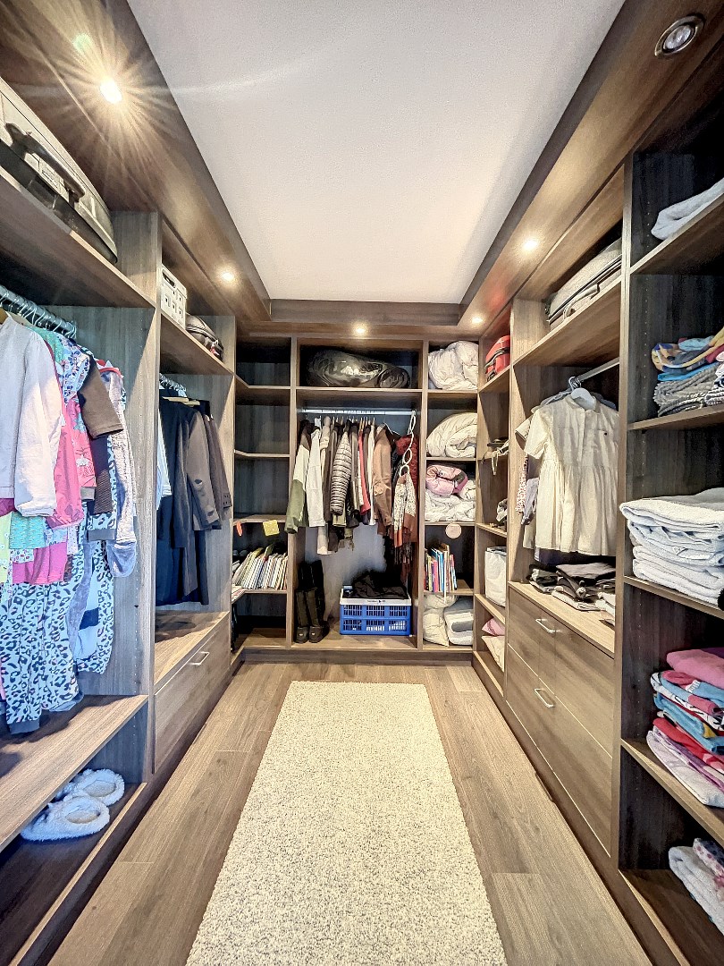 De woning beschikt over 4 slaapkamers (mogelijkheid om 5de kamer te maken) op het eerste verdiep, wat betekent dat er genoeg ruimte is voor iedereen om zich terug te trekken en te ontspannen. Daarnaast is er ook een grote (31,5m²) ruimte op het gelijkvloers die momenteel wordt gebruikt als 2de leefruimte/speelkamer. Deze ruimte met aparte inkom en wateraansluiting kan ook dienen als praktijkruimte voor een vrij beroep of kan perfect als zorgwoning ingericht worden. Verder is er op het gelijkvloers een ruime leefruimte met living, eetplaats en open keuken, een aparte bureauruimte, een bergplaats en toilet. Op het eerste verdiep zijn er naast de slaapkamers nog 2 dressings en een badkamer met bad en douche.