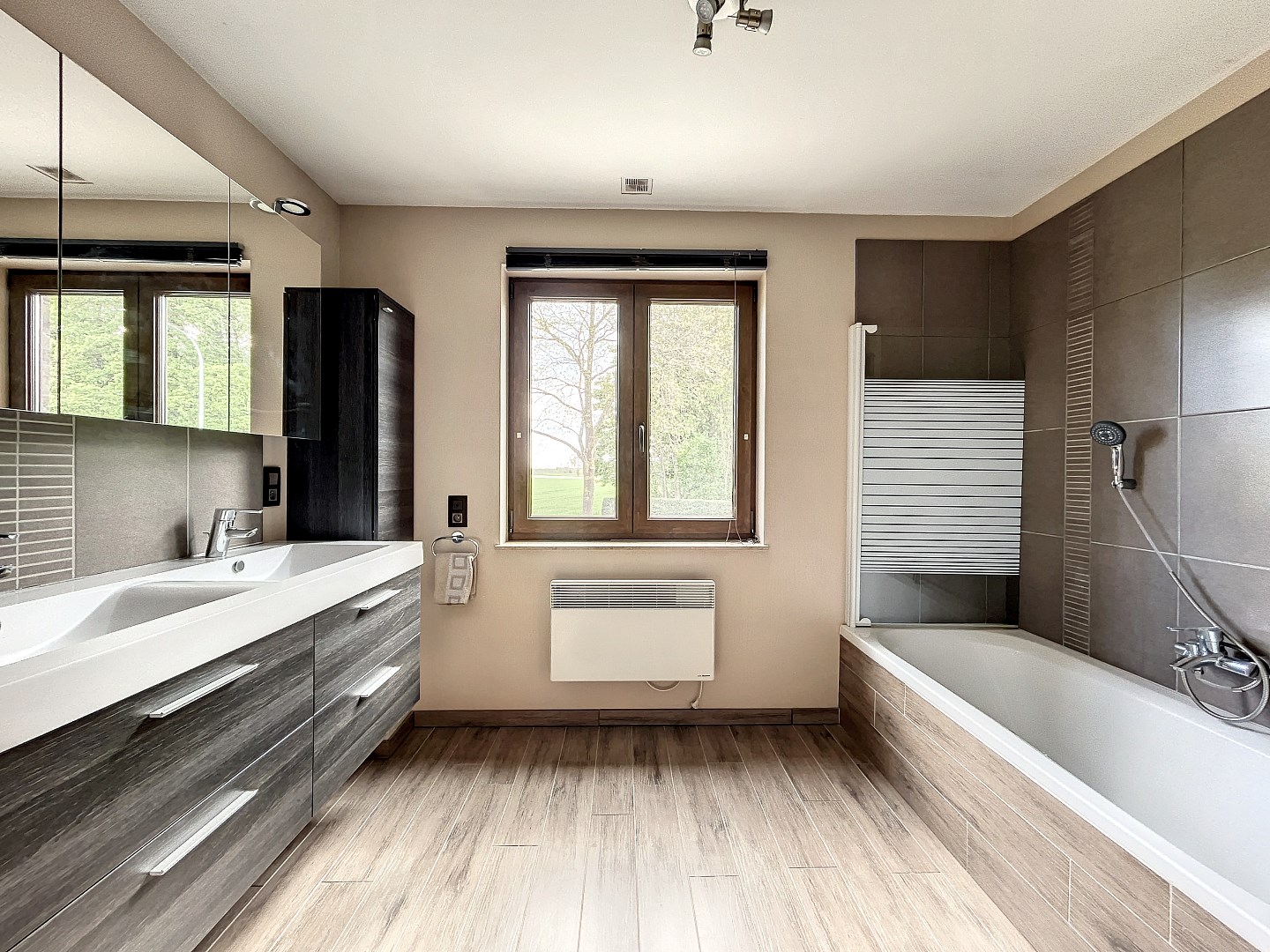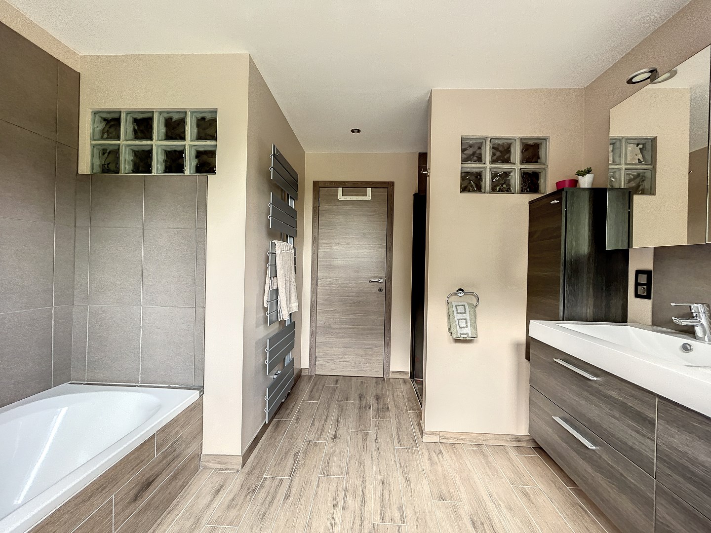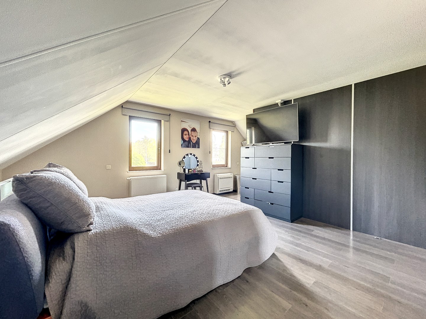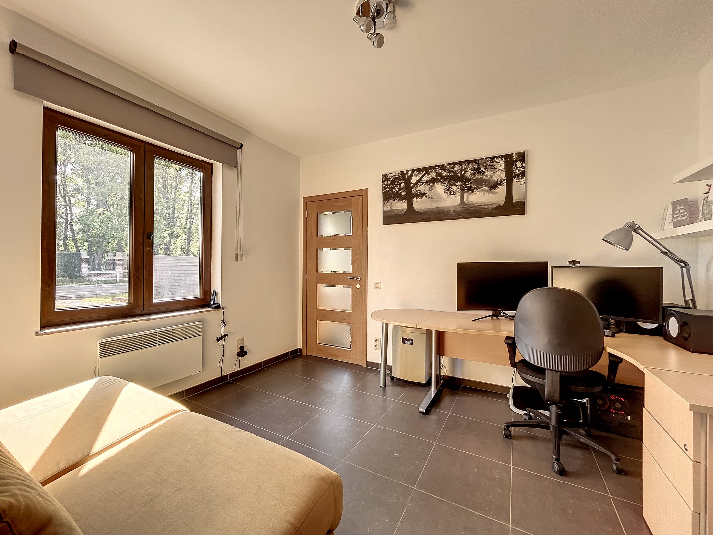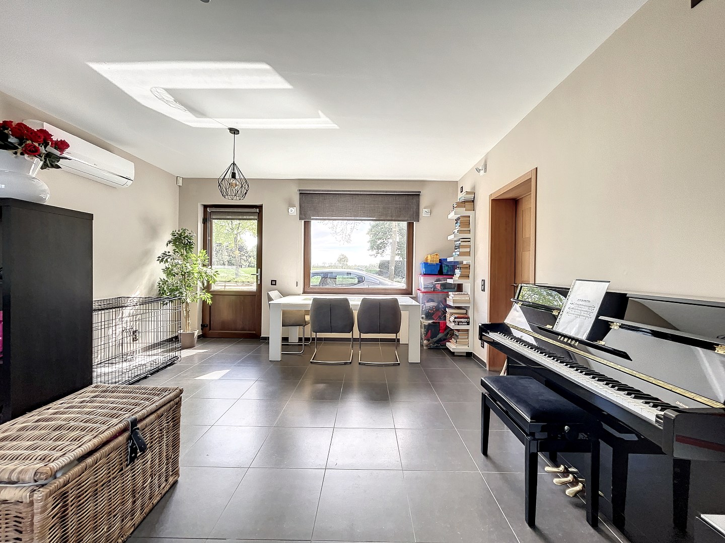 De woning beschikt over 4 slaapkamers (mogelijkheid om 5de kamer te maken) op het eerste verdiep, wat betekent dat er genoeg ruimte is voor iedereen om zich terug te trekken en te ontspannen. Daarnaast is er ook een grote (31,5m²) ruimte op het gelijkvloers die momenteel wordt gebruikt als 2de leefruimte/speelkamer. Deze ruimte met aparte inkom en wateraansluiting kan ook dienen als praktijkruimte voor een vrij beroep of kan perfect als zorgwoning ingericht worden. Verder is er op het gelijkvloers een ruime leefruimte met living, eetplaats en open keuken, een aparte bureauruimte, een bergplaats en toilet. Op het eerste verdiep zijn er naast de slaapkamers nog 2 dressings en een badkamer met bad en douche.