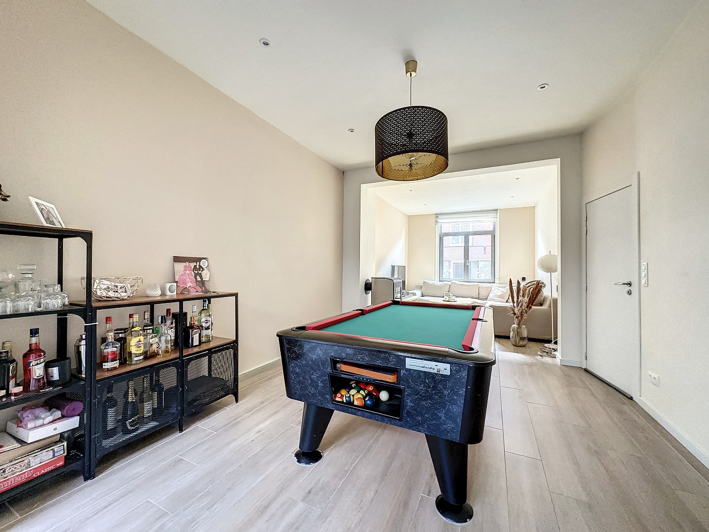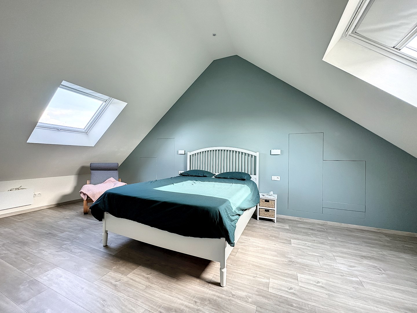 Via de inkomhal kom je terecht in de ruime leefruimte met hoge plafonds. De voorste ruimte wordt momenteel gebruikt als zithoek, hier aansluitend heb je een eetkamer, een extra ruime en de keuken met zicht op de tuin. Verder beschikt het gelijkvloers nog over een badkamer en een apart toilet. De eerste verdieping beschikt over twee ruime slaapkamers en de zolderverdieping werd volledig getransformeerd tot een masterbedroom met inbouwkasten. Gezien de grootte van de kamer heeft u hier eventueel nog de mogelijkheid om deze op te splitsen in twee aparte kamers indien gewenst.