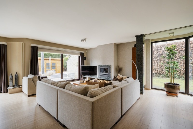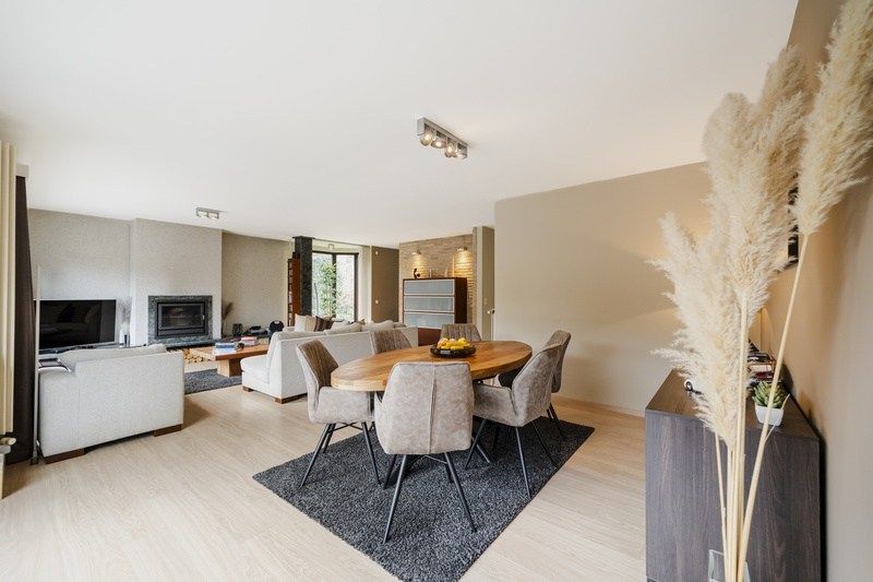 Vanaf het eerste moment valt de overvloedige natuurlijke lichtinval op. De woning werd ontworpen met bijzondere aandacht voor architectuur en licht, wat zich vertaalt in grote raampartijen en een aangename, open sfeer doorheen alle leefruimtes. Hier leeft u met de seizoenen, badend in daglicht.
