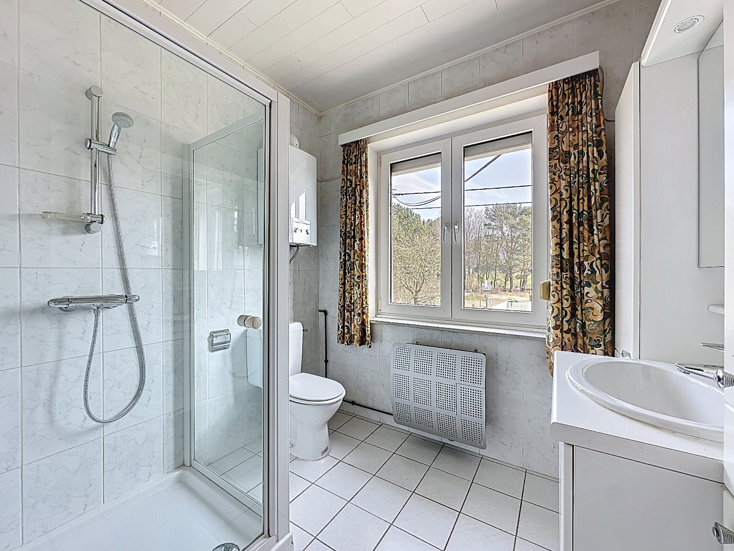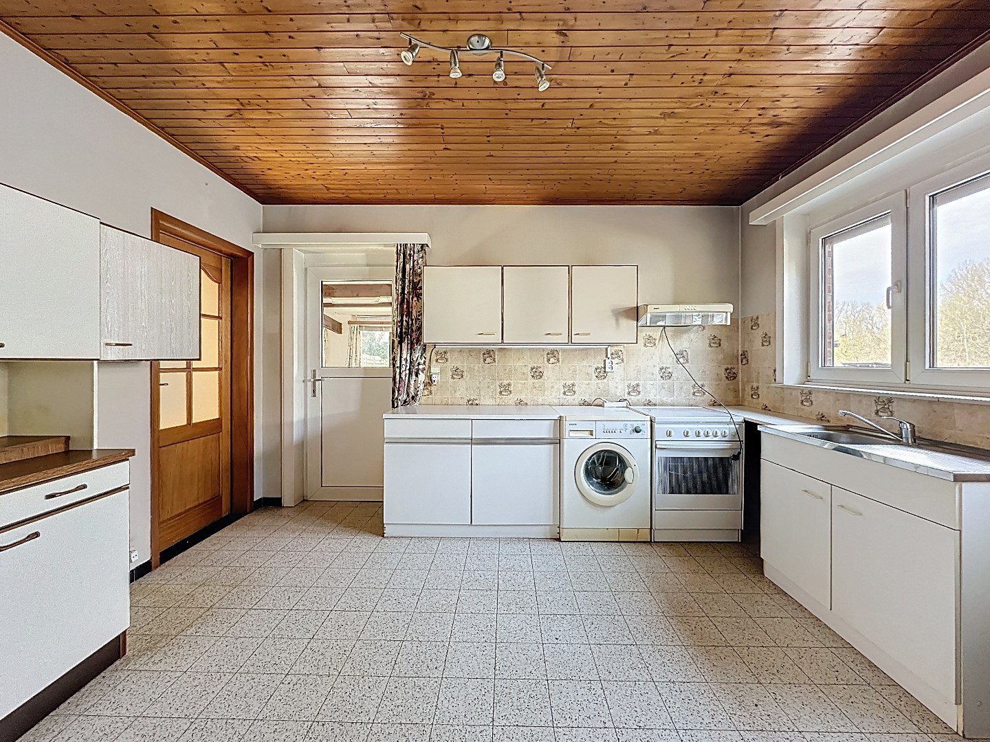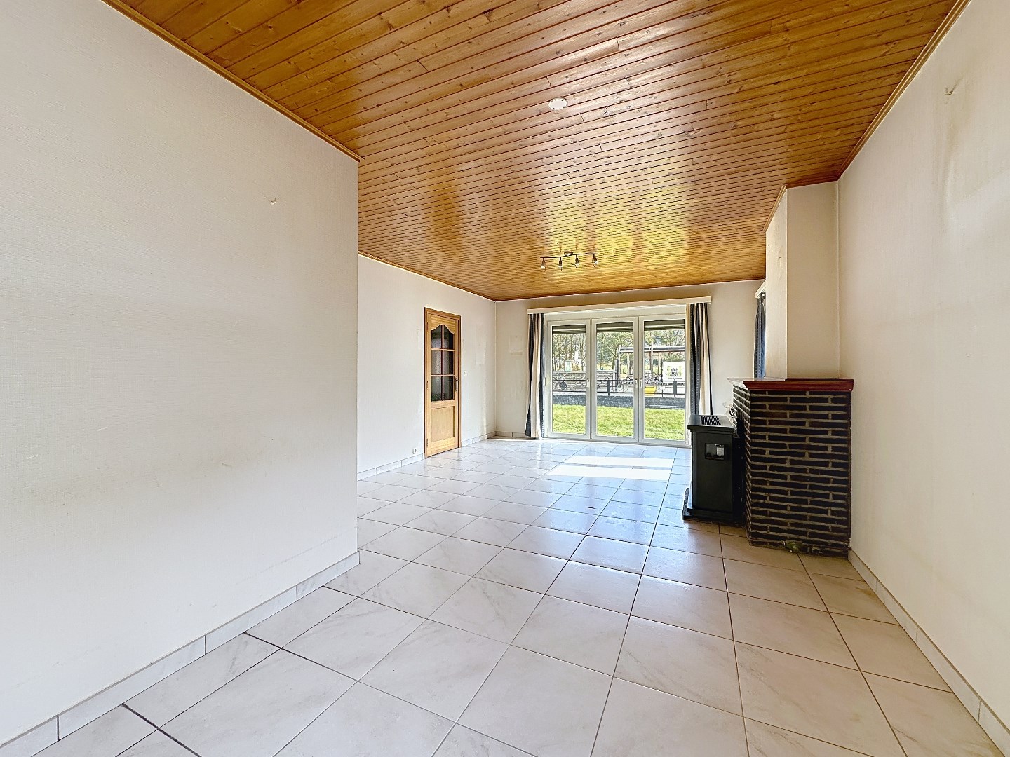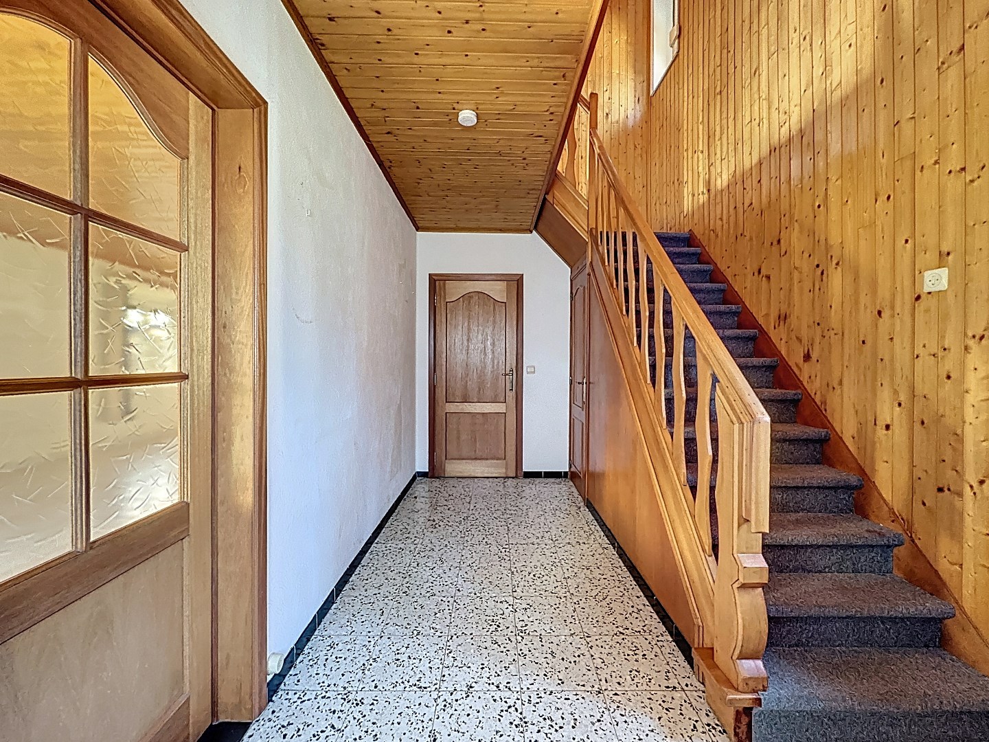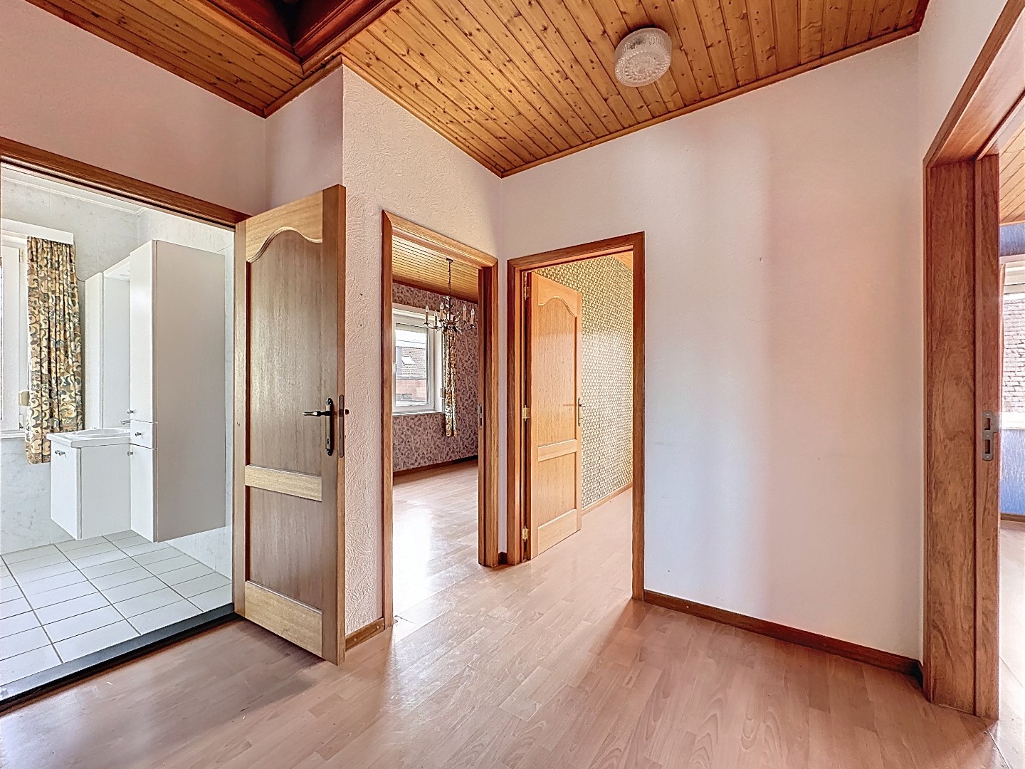 Via de voordeur kom je terecht in de ruime inkomhal met gastentoilet. De inkom geeft toegang tot zowel de lichtrijke leefruimte als de keuken. Vanuit de keuken heb je toegang tot de veranda met zicht op de open tuin. Wanneer je de trap naar boven neemt, kom je terecht op de overloop. Hier bevinden zich drie ruime slaapkamer, een kleinere kamer en de badkamer.