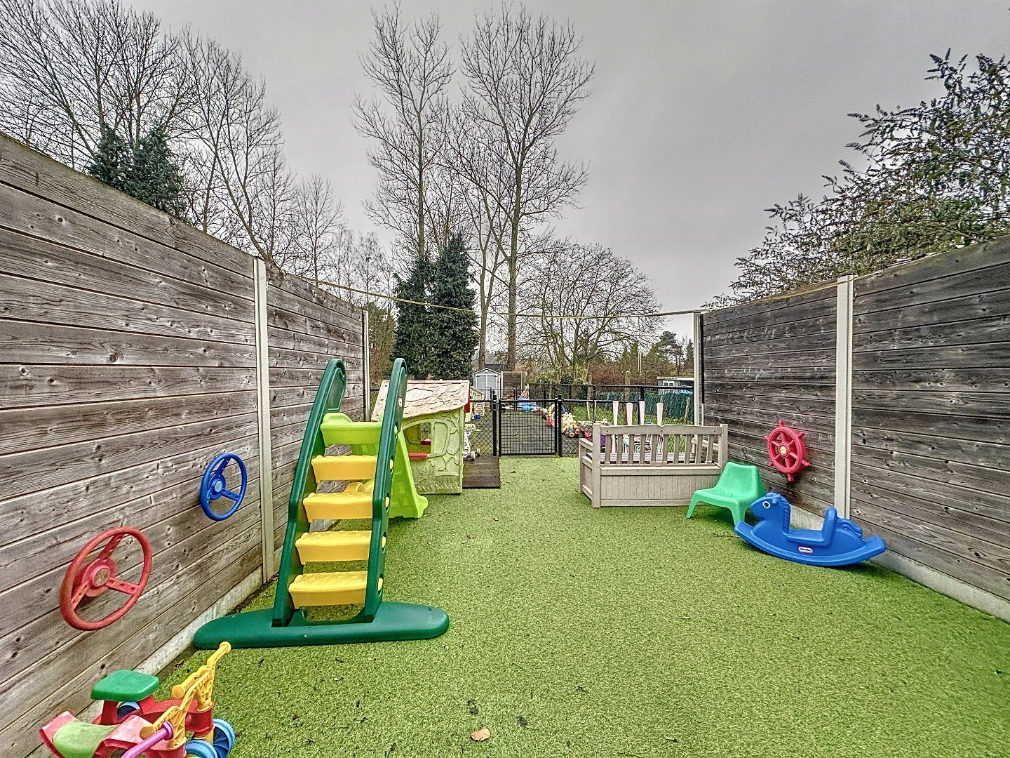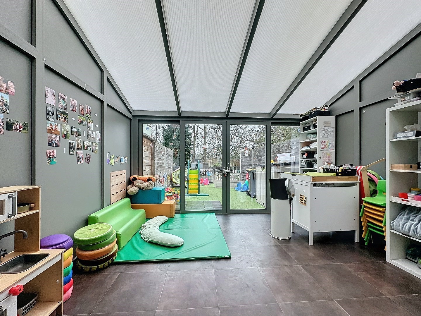 Vandaag de dag wordt de woning gebruikt voor het uitbaten van een crèche. Wie door al het speelgoed en kinderbedjes kan kijken, ziet wat voor potentieel deze woning te bieden heeft.