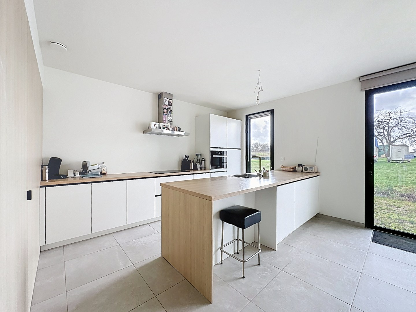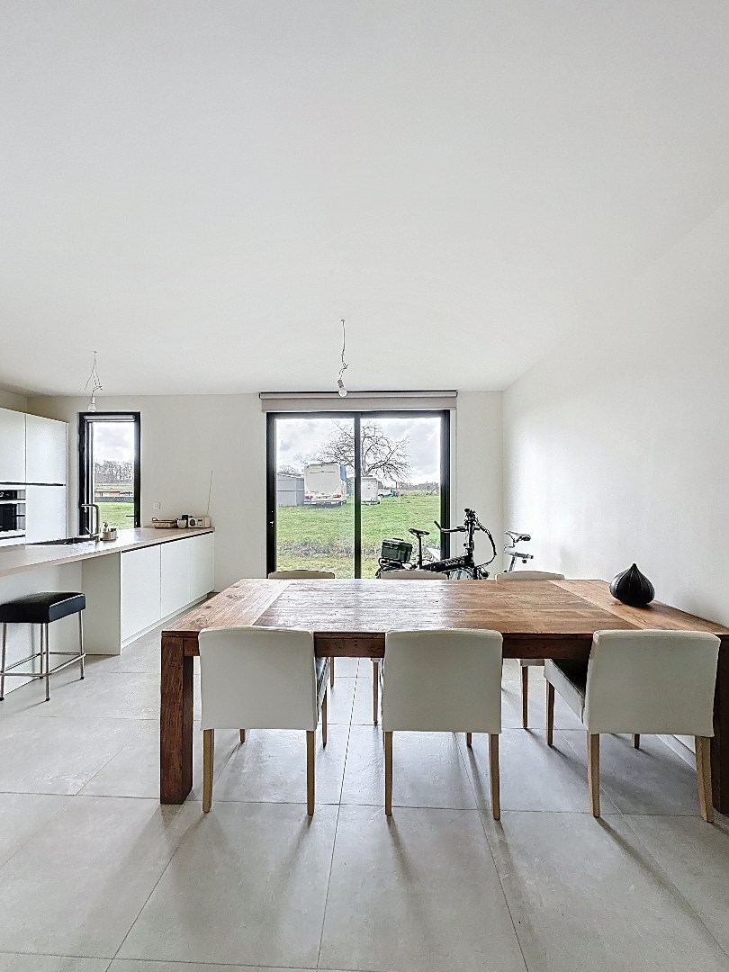 De woning combineert hedendaags wooncomfort met een doordachte, energiezuinige afwerking. Bij het binnenkomen word je verwelkomd in een ruime en lichtrijke open leefruimte die naadloos overgaat in de moderne open keuken. Grote raampartijen zorgen hier voor een overvloed aan natuurlijk licht en een aangename woonbeleving, ideaal voor zowel dagelijks comfort als het ontvangen van gasten.