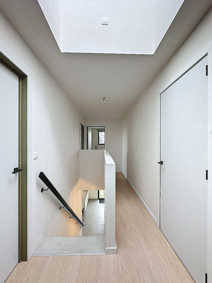 Op de verdiepingen bevinden zich vier volwaardige slaapkamers, waardoor deze woning perfect geschikt is voor gezinnen of wie extra ruimte wenst voor een bureau of hobbykamer. De ruime badkamer is stijlvol ingericht en biedt alle comfort.