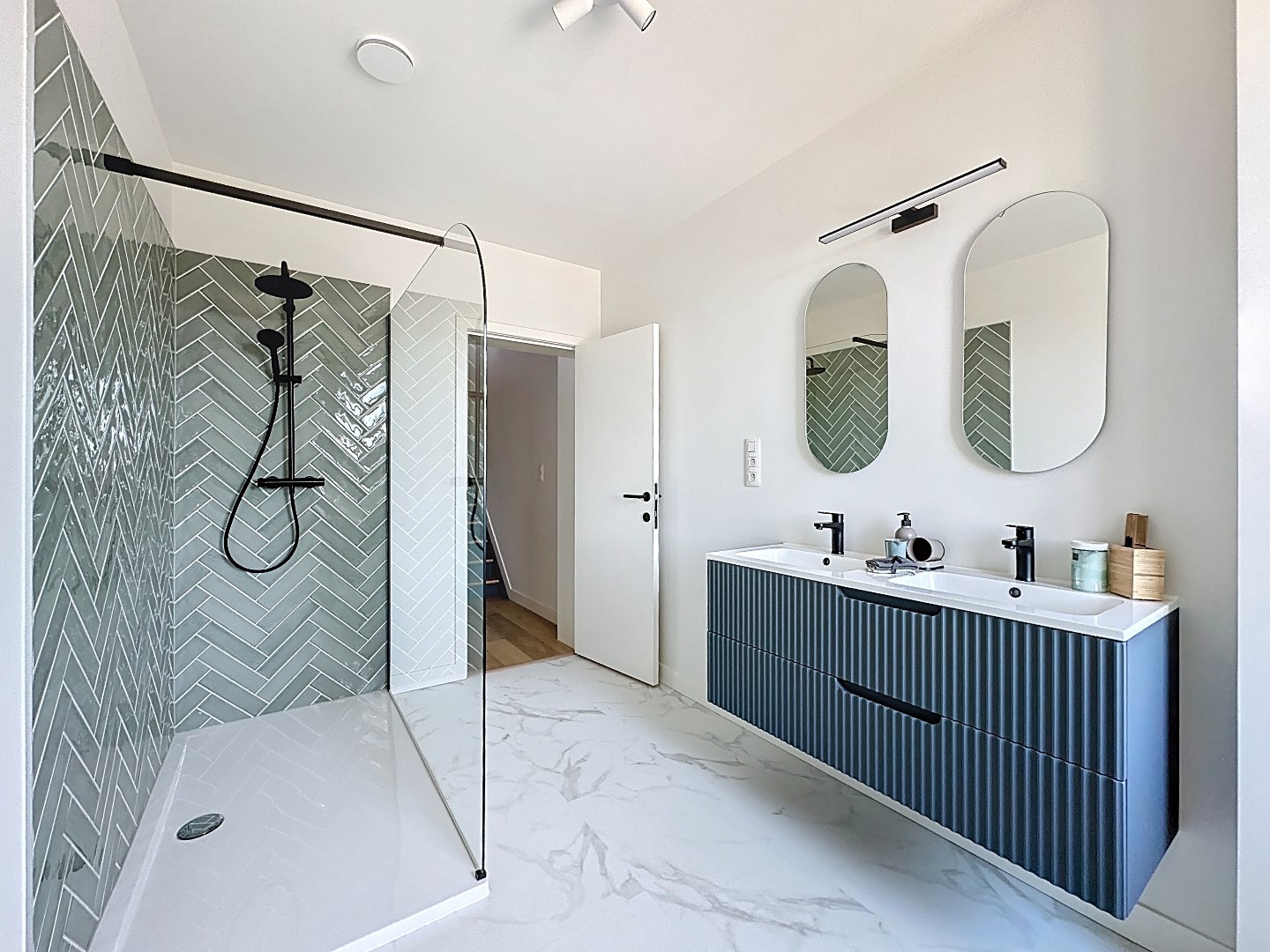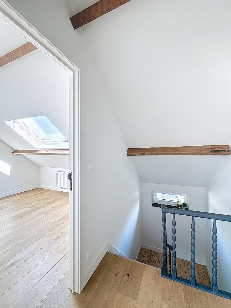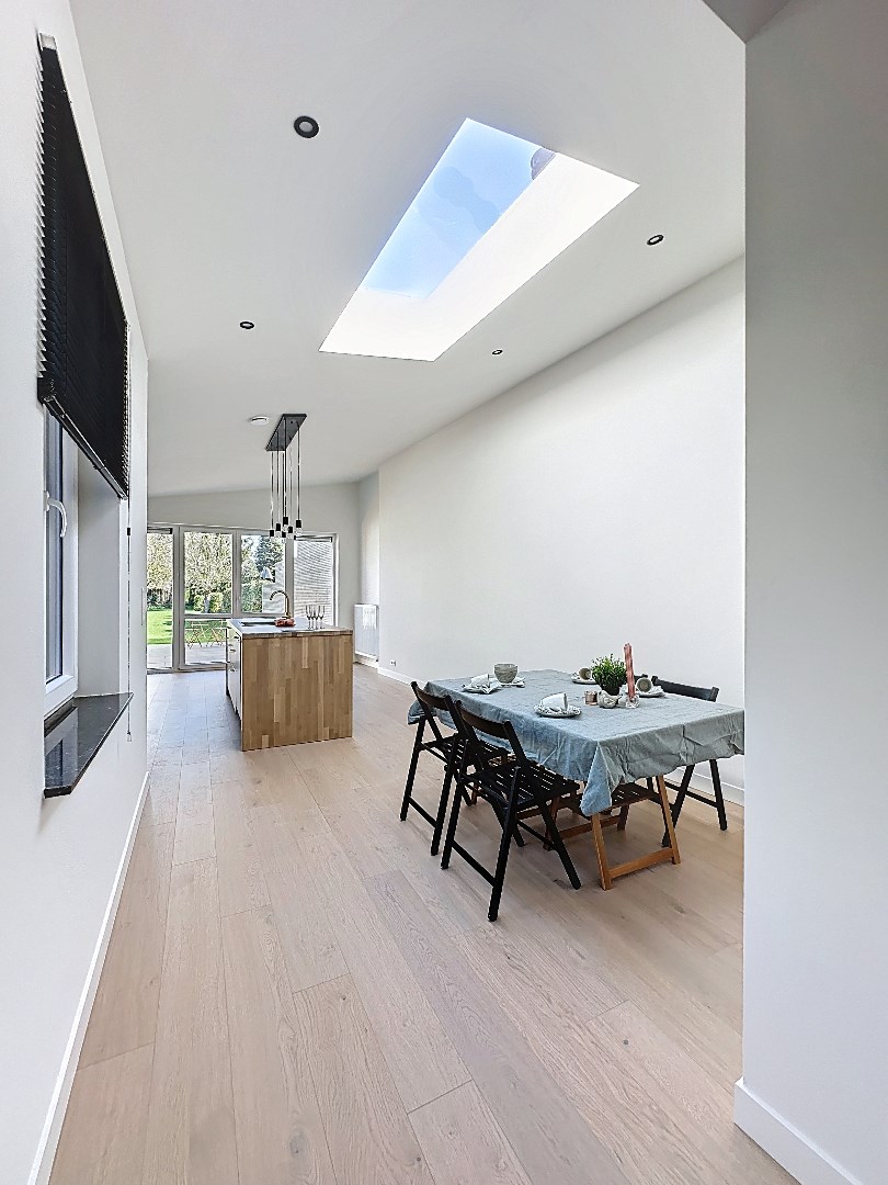 De woning beschikt over vier slaapkamers, ideaal voor een gezin of wie graag over extra ruimte beschikt voor een bureau, hobbykamer of logeerkamer. De moderne keuken, met zicht op de prachtig aangelegde tuin, vormt het kloppende hart van het huis. Dankzij de grote raampartijen geniet je hier van een overvloed aan natuurlijk licht én een rustgevend zicht op het groen.