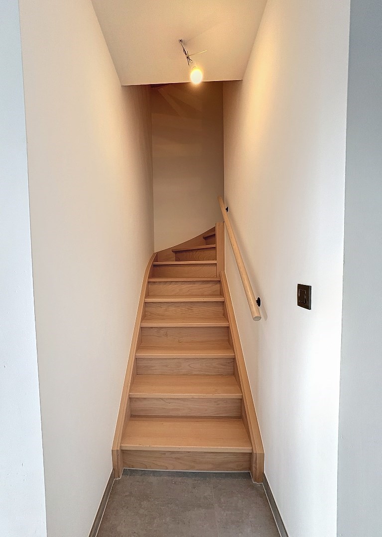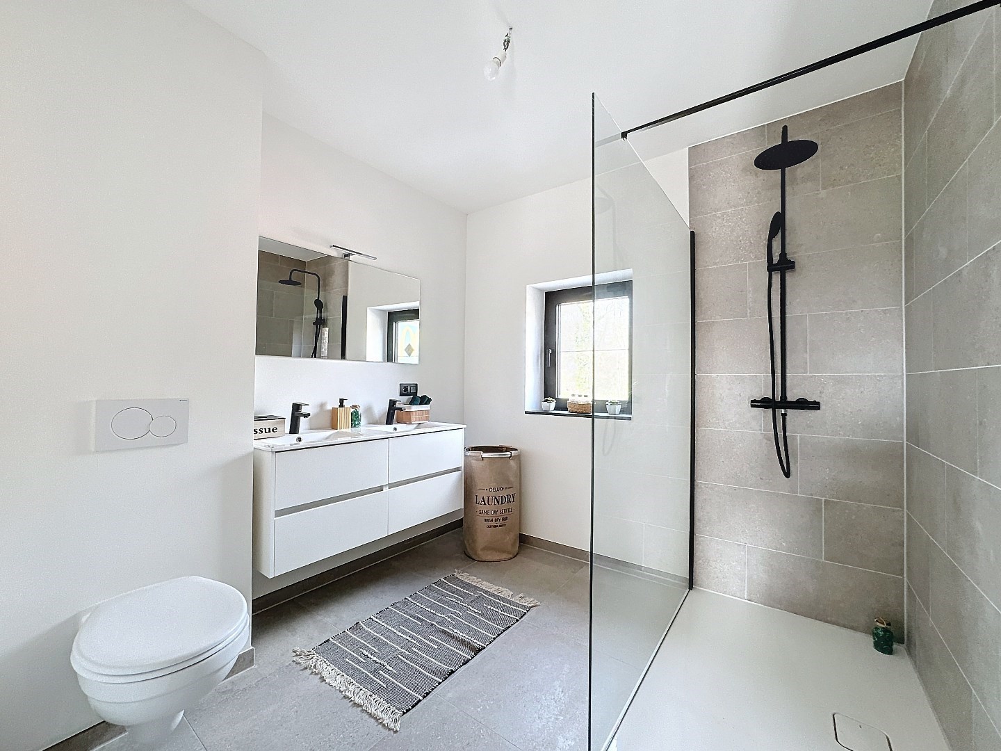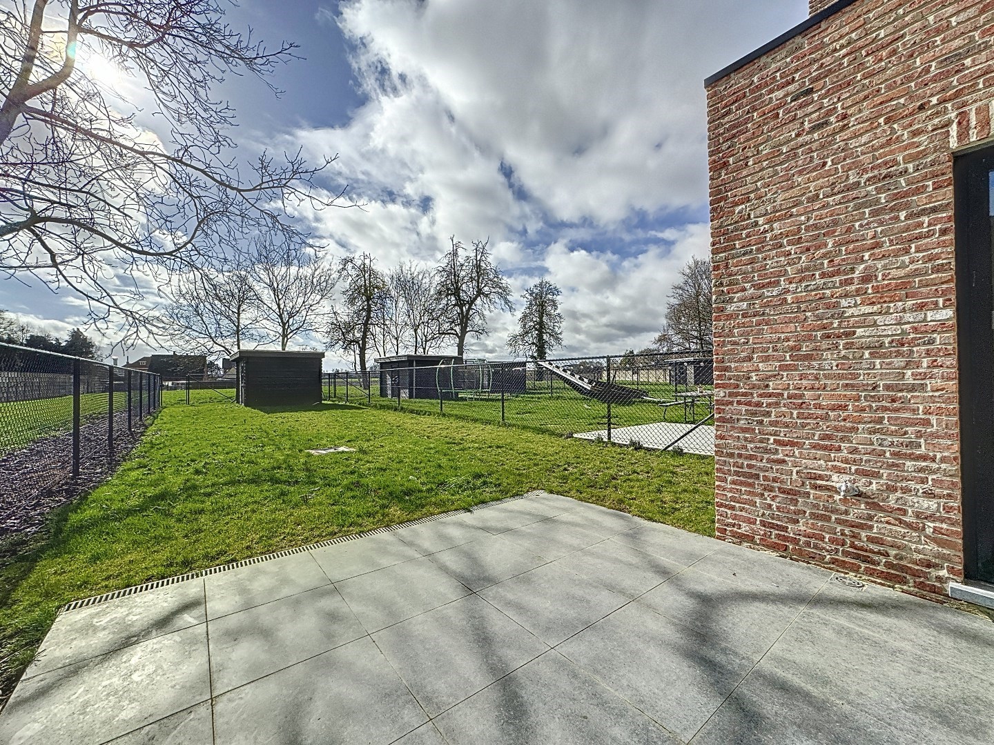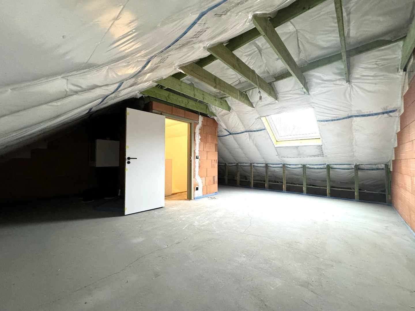 De woning beschikt over 3 volwaardige slaapkamers (met mogelijkheid om 1 of 2 extra kamers te creëren op de zolder), een ruime badkamer met inloopdouche, een technische ruimte met plaats voor wasmachine en droogkast en een ruime woonkamer met open keuken, vanwaar u zicht hebt op de tuin en en de velden.